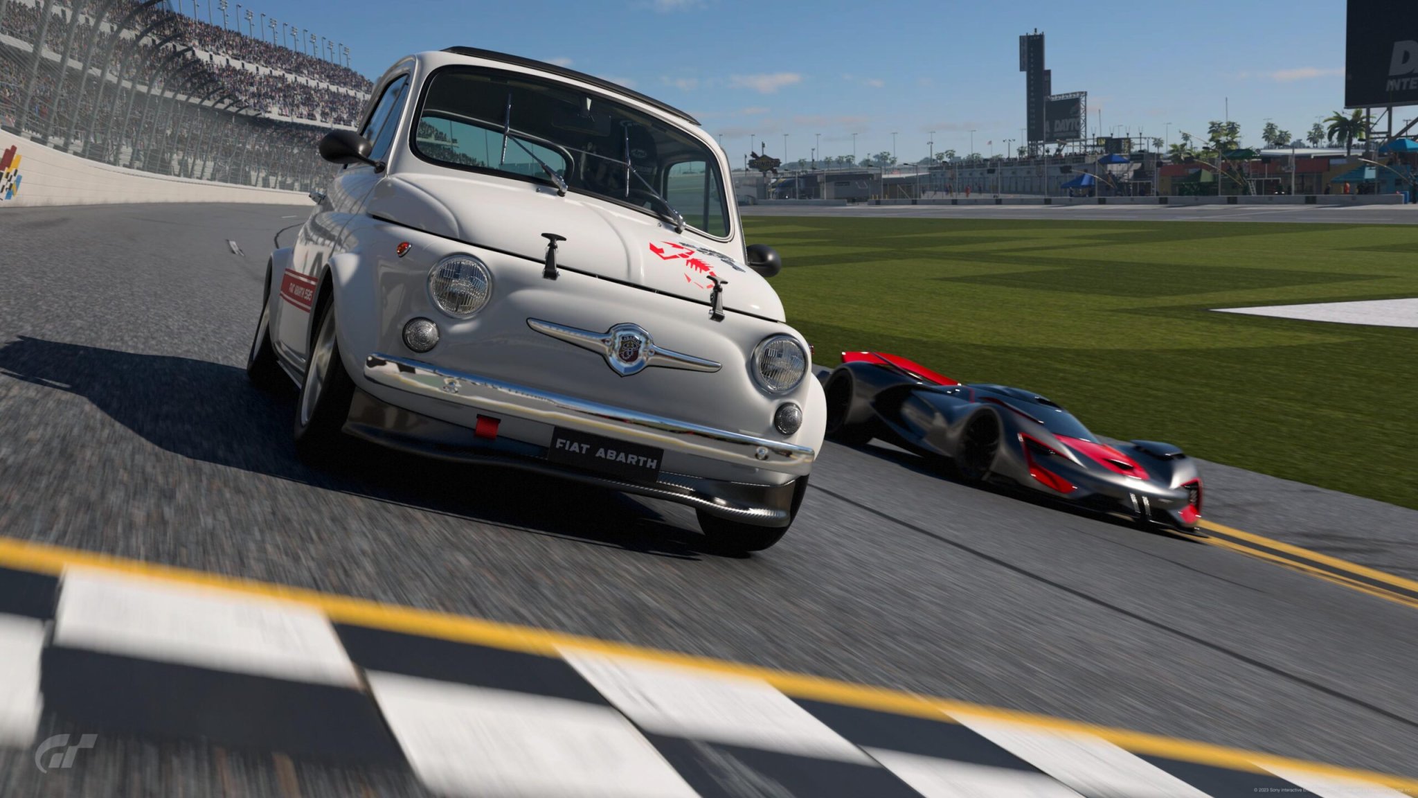 Stack the field with 19 of these hobbled concept cars, place your FK8 Civic Type R-powered Fiat at the back, and make sure to set the AI difficulty to Professional. It’ll take about 26 laps to make that million credits, and you’ll make even more if you’re careful not to hit your competitors as you lap the Daytona oval. (Believe me, with the relative speed difference and how the field spaces out, it’ll be harder than it sounds.) You could apply this method to other tracks, of course, though I can’t speak to the 595’s handling prowess around road courses. You’ll see what I mean as soon as you floor the accelerator in this thing from a grid start.