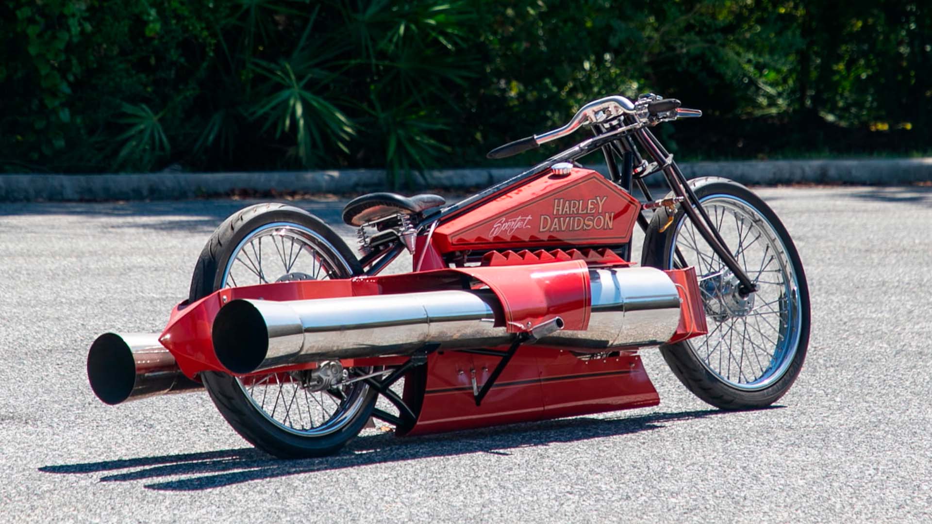 If you’ve ever had the strange, burning desire to straddle a pulsejet engine, you might be in luck. A 1929 Harley-Davidson powered by such a lump with 250 pounds of thrust is headed to Mecum‘s Kissimmee auction in January. Better yet, it’s a creation of the Rocketman himself, Bob Maddox.