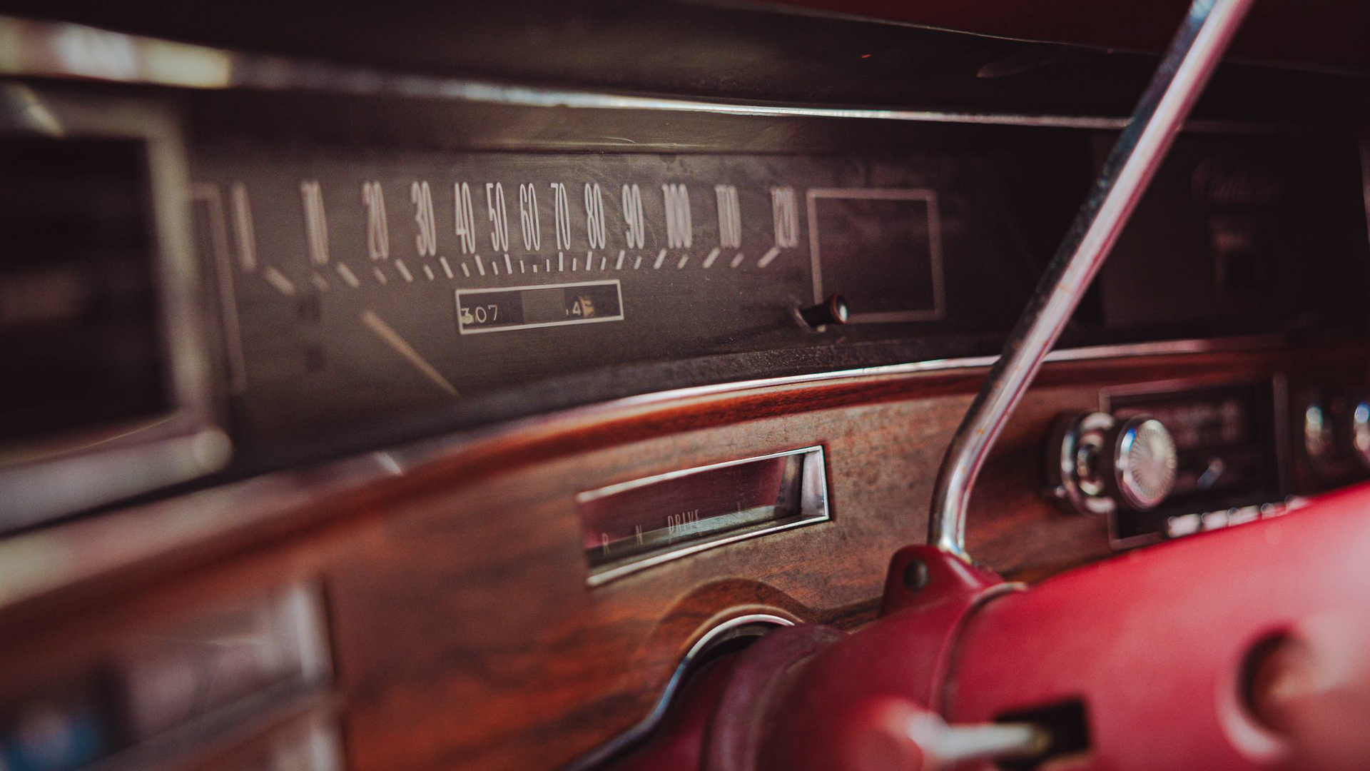Since it sat in storage for so long, the interior is essentially perfect. Its red leather looks great, all of the wood trim is in nice shape, and even the carpets are clean. With only 43,000 miles on the clock, though, that’s not too surprising. This Eldorado was criminally under-driven.