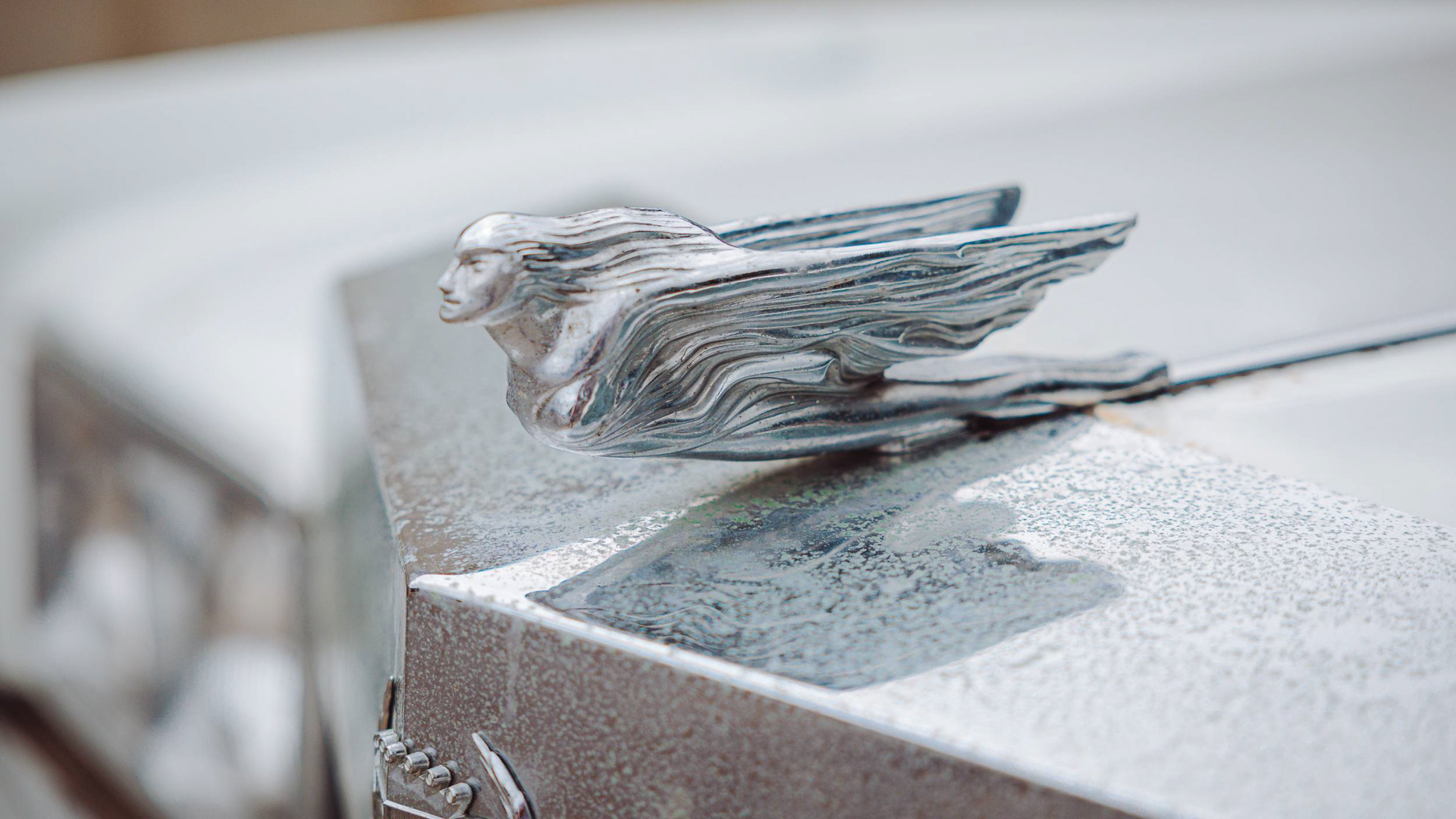 The contrast of the white paint and black vinyl wagon roof looks so perfectly ’70s and gives the car a ton of Americana that you simply can’t find east of the Atlantic. However, its massive chrome grille and flying lady hood ornament are very Rolls-Royce-like, so that helps it fit into its environment a bit.