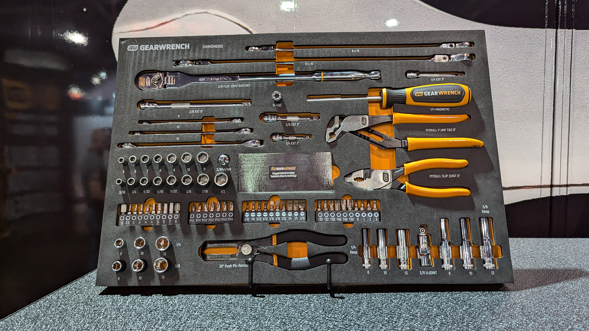 Gearwrench has also tosses in some 8-inch Pitbull V-Jaw tongue and groove pliers, a set of 6-inch Pitbull slip joint pliers, and some push-pin removal pliers. A magnetic strip to help hold bits and fasteners is an awesome bonus.