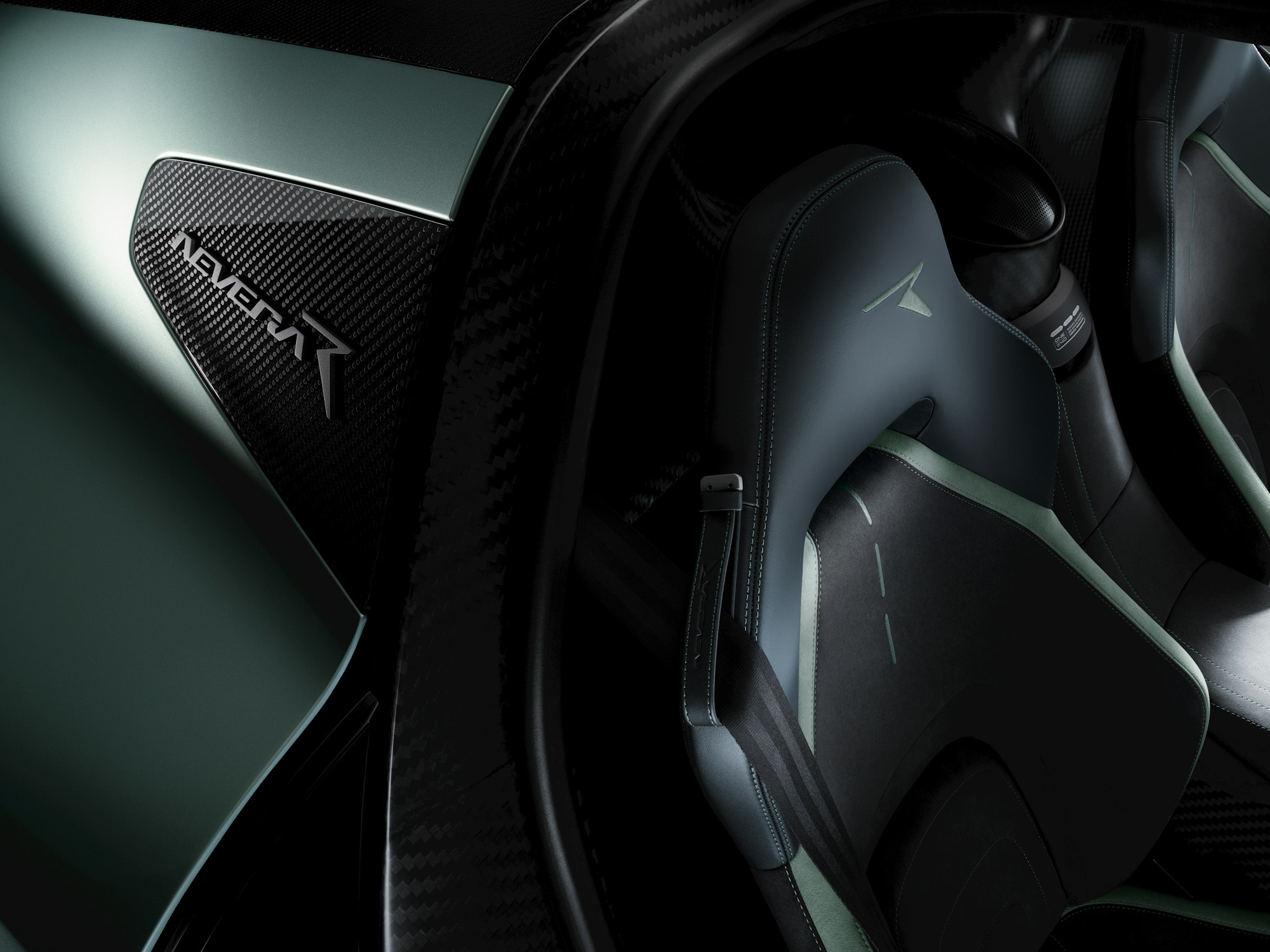 To make use of that power, the Nevera R upgrades to Michelin Cup 2 tires mounted on 20-inch front wheels and 21-inch rears. Rimac retuned the Nevera R’s four-wheel torque-vectoring AWD system around these, sharpening its steering, and calculably improving cornering. The way Rimac tells it, the Nevera R is 3.8 seconds quicker around Nardo with 10% less understeer and 5% more lateral grip. Some of that comes from a reformulated aero package, with a fixed rear wing and enlarged diffuser generating 15% more downforce at 10% greater efficiency.