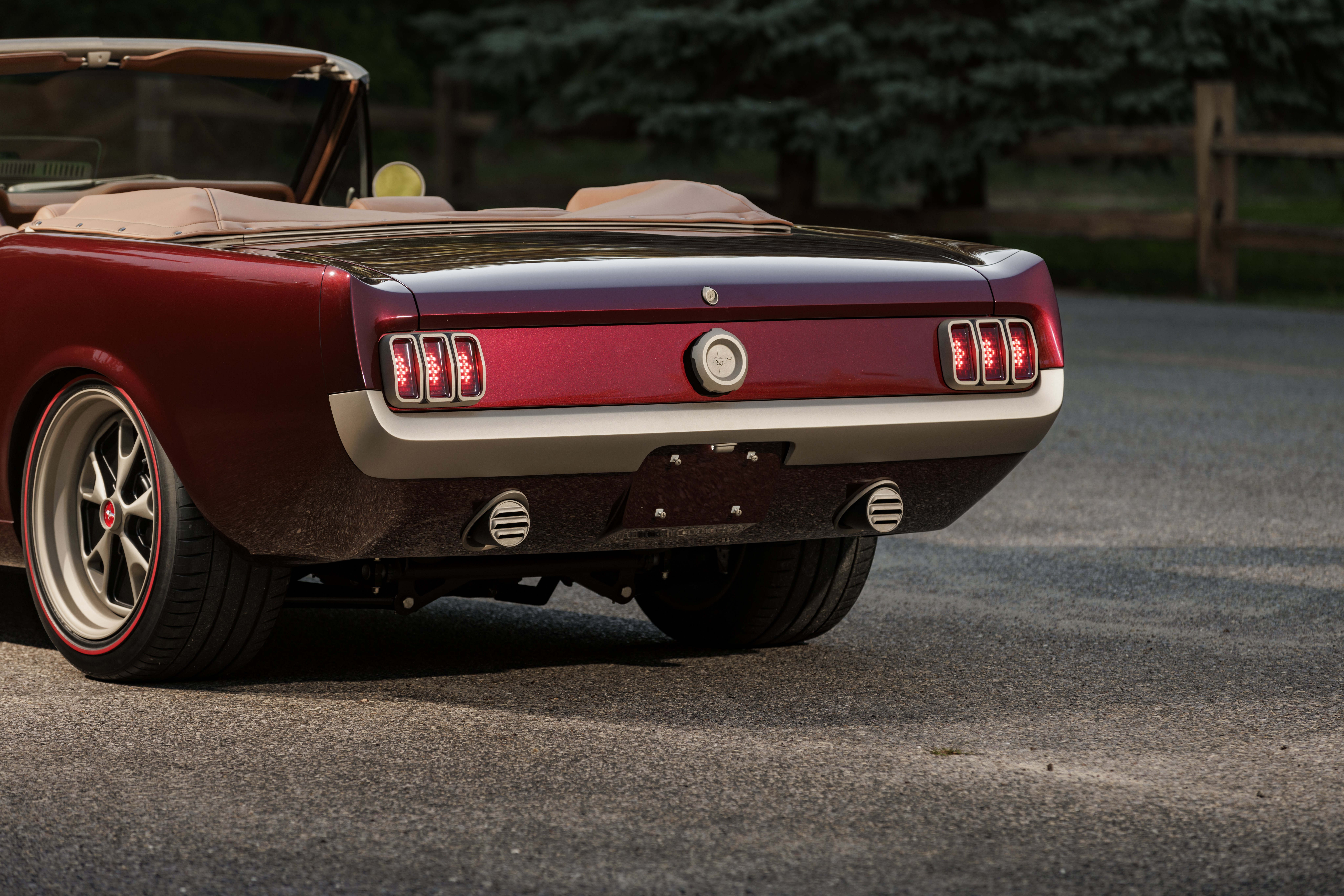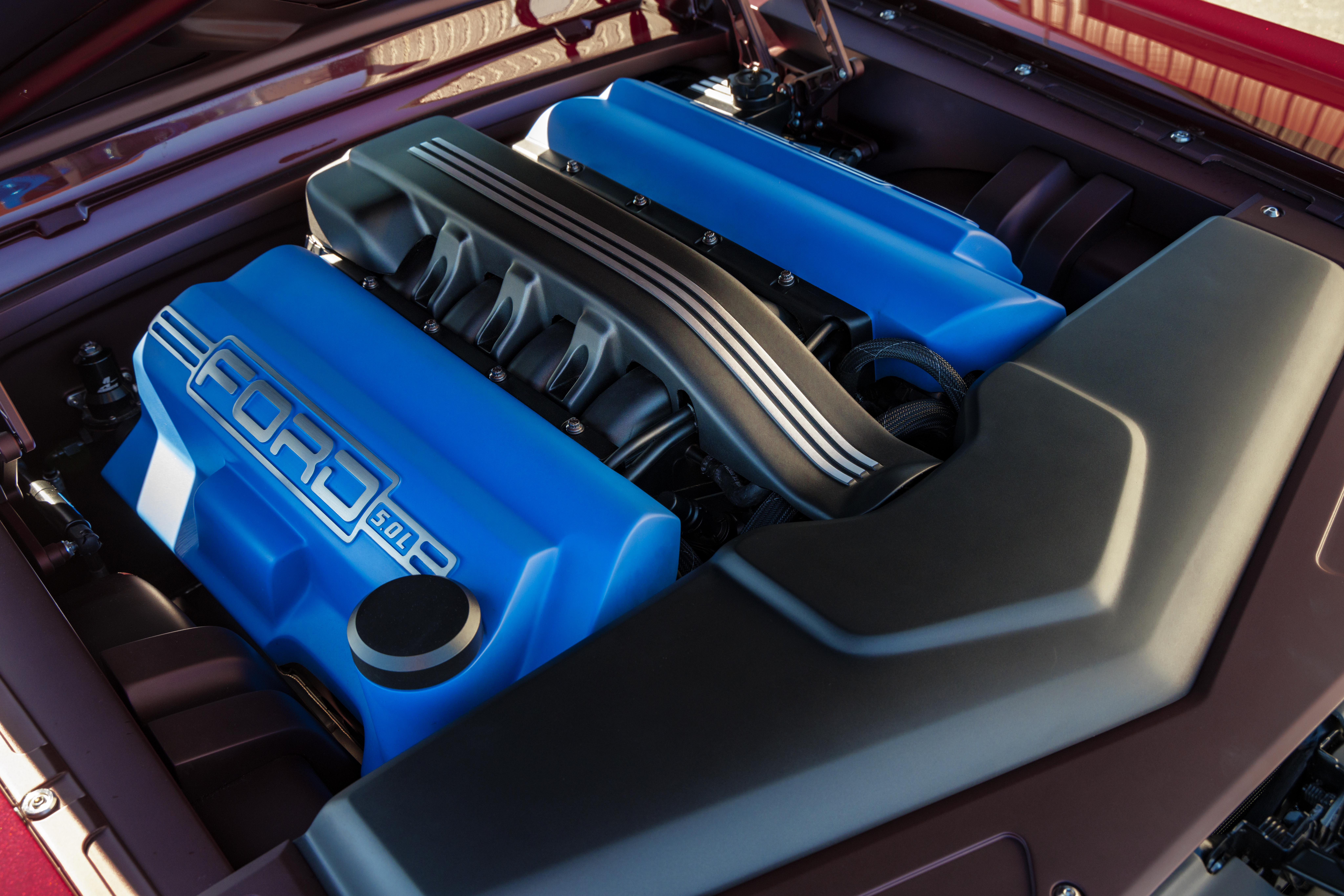Underneath it all is a Roadster Shop unibody chassis with Penske dampers and an independent rear suspension. While the hardware sounds serious, it was tuned to be comfortable and soft. The same goes for the powertrain, a Ford Performance crate Coyote V8 with a Ford 10R80 10-speed automatic transmission. Unusually for Ringbrothers, the engine is untouched and has its stock 460 horsepower and 420 lb-ft of torque, complete with custom valve and intake manifold covers to beautify the engine bay.