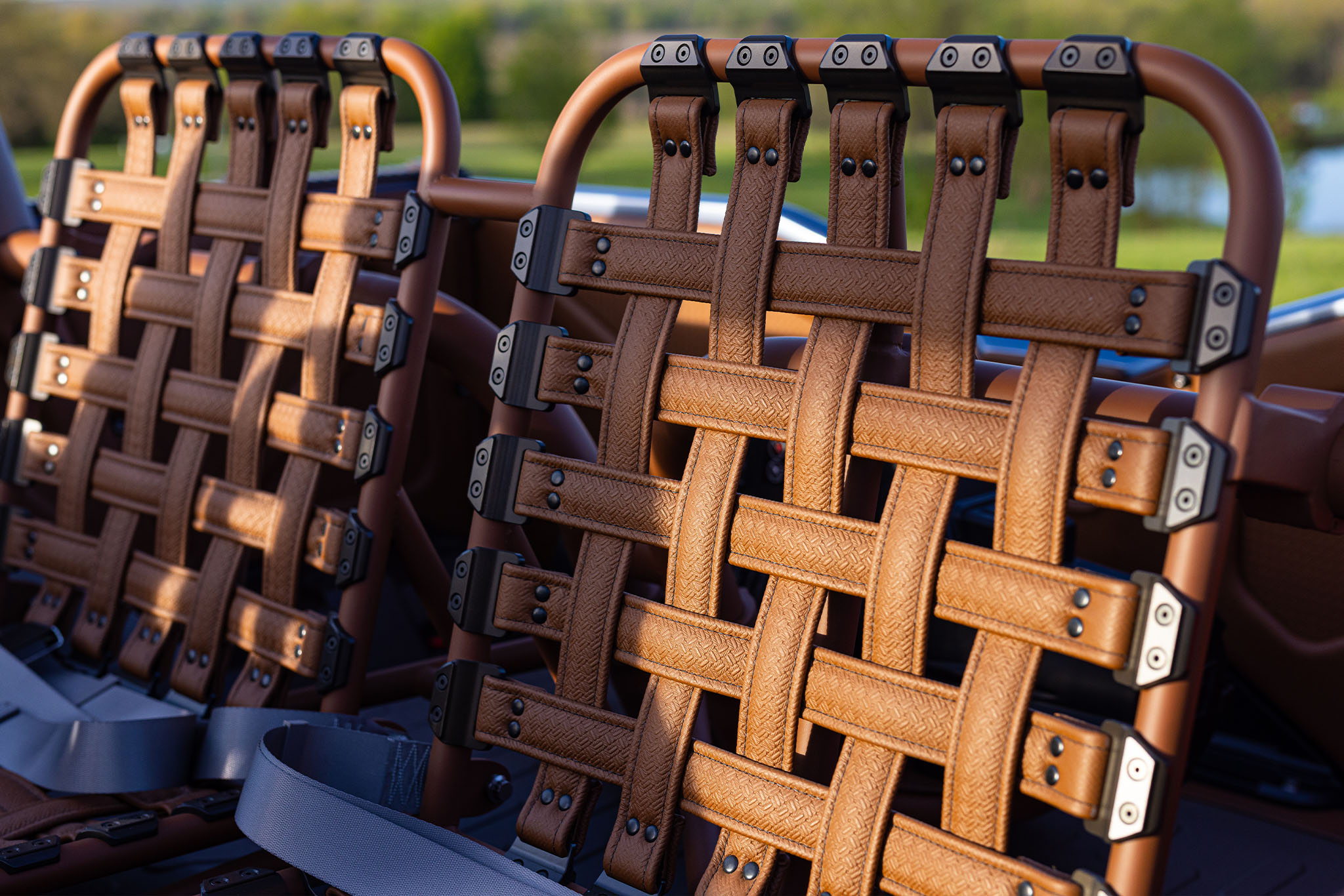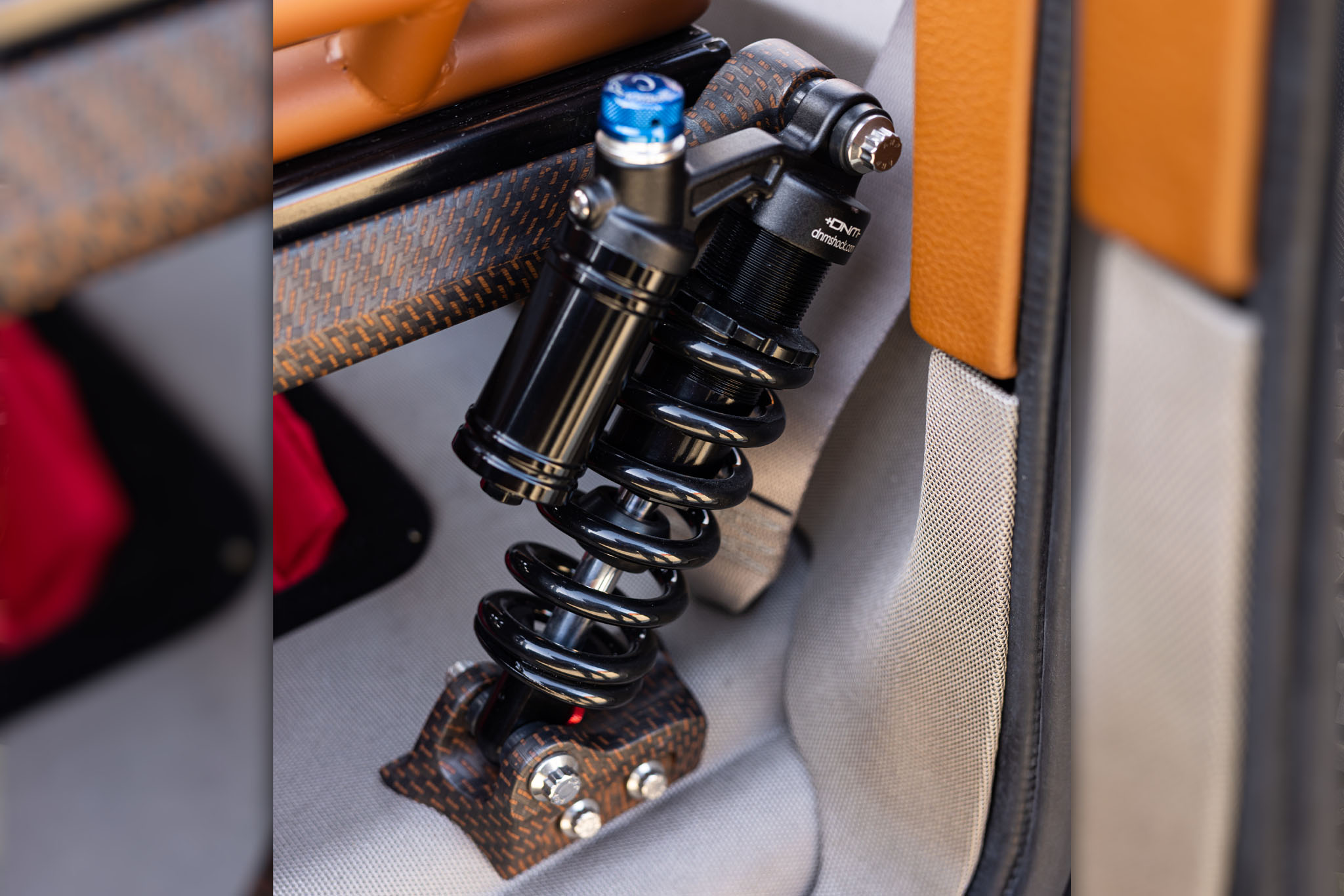 Now that stuff is all well and good, but the best parts of this build can’t be seen or heard from 50 feet away. The seats, for instance, are suspended by their own little coilovers. They’re also upholstered pristinely, resembling finely crafted yet robust beach chairs. I wouldn’t want to drag them around my deck, but the 2.9-liter Whipple supercharger definitely helps with that.