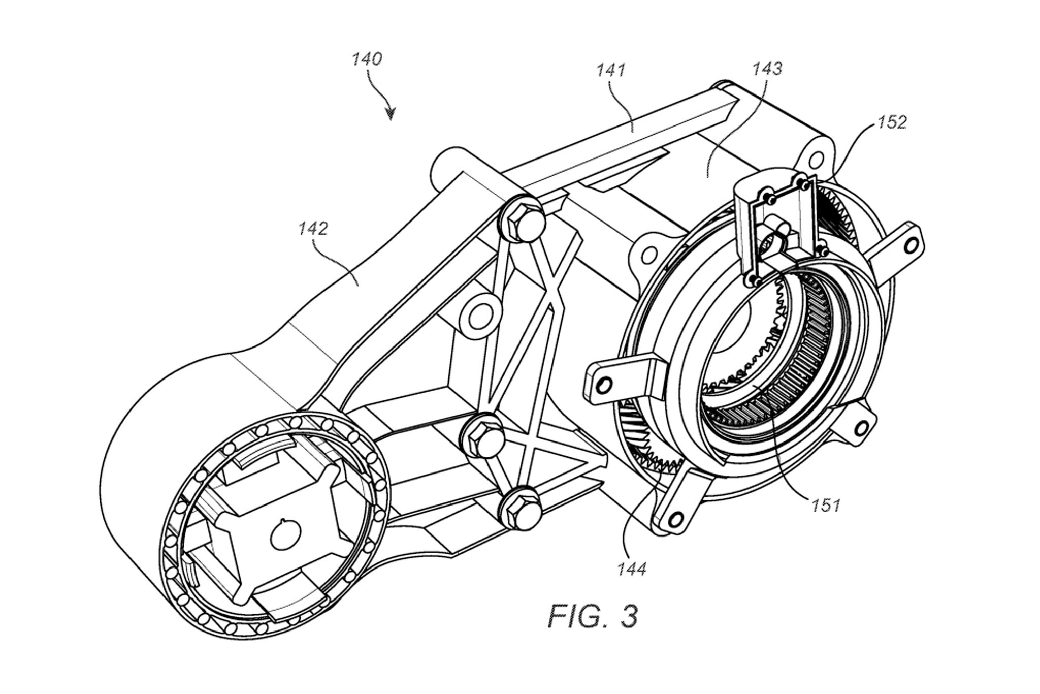 The young electric automaker has just received a patent for such a device, which is the first of its kind as far as we’re aware. According to the document, the four gearboxes would mount directly onto the existing drive units and replace the inner CV joints of the stock axles. Inside each gearbox, there would be a planetary gearset to provide the reduction as well as an actuator to engage or disengage low range. The patent states the reduction could be between 1.5:1 and 5.0:1.
