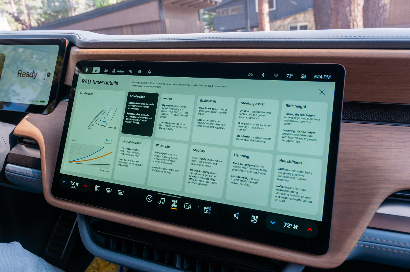 Sitting inside a 2026 Rivian R1T Quad in Lake Tahoe, California the automaker’s Chief Software Officer Wassym Bensaid told The Drive the new RAD Tuner feature is being considered as a possible upgrade for other models.