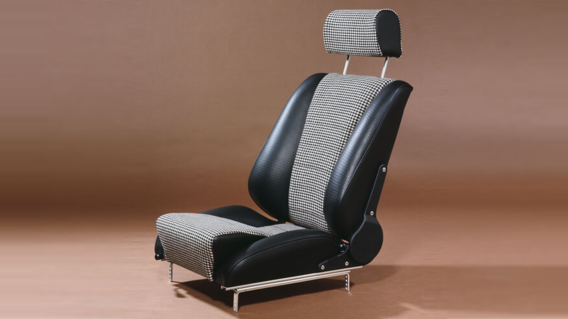 - 1965: World’s first retrofit seat for automobiles, featuring revolutionary foam upholstery and side bolsters (featured in the first image of this post)
