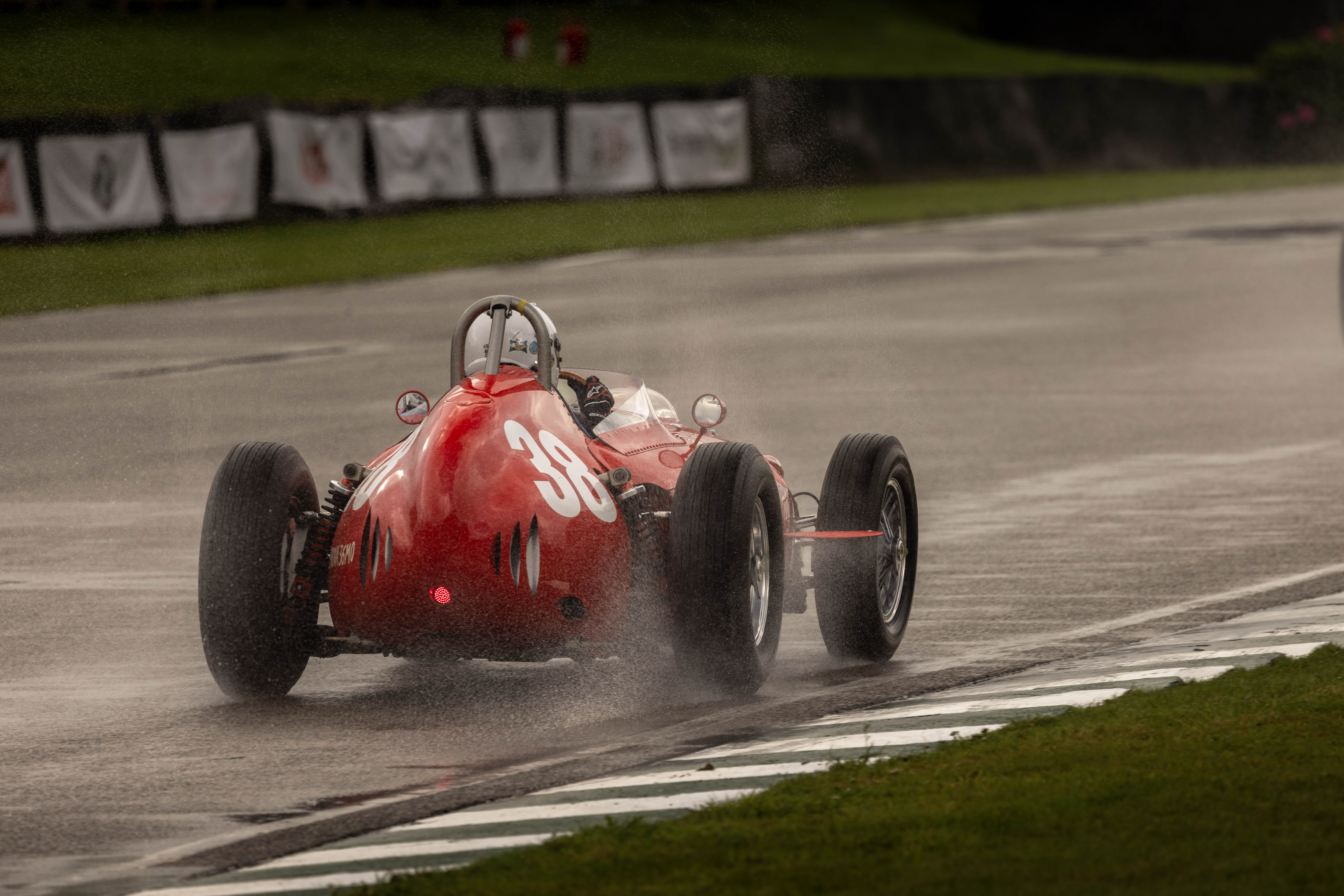 Revival’s main attraction is the rare opportunity to see truly ancient, ultra-valuable cars pushed to their limits in earnest fender-to-fender racing. The 2024 event had a few good spats of serious rain, making circuit laps super hairy for people on period-correct tires. Drivers didn’t seem to hold back, though. Neither did Mr. Shaffer, who bravely climbed into a poncho and caught some absolute bangers of beautiful machines racing in the rain.