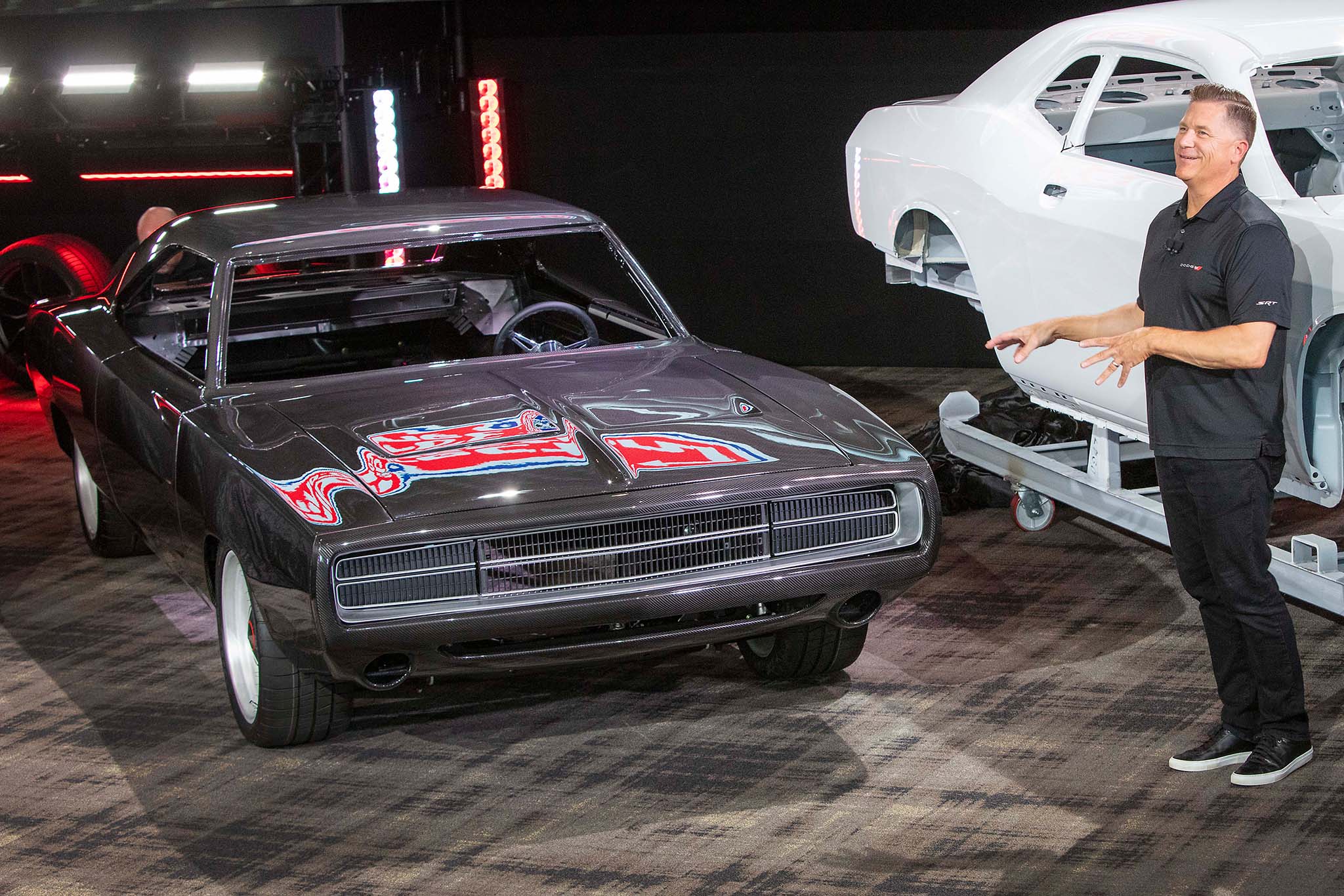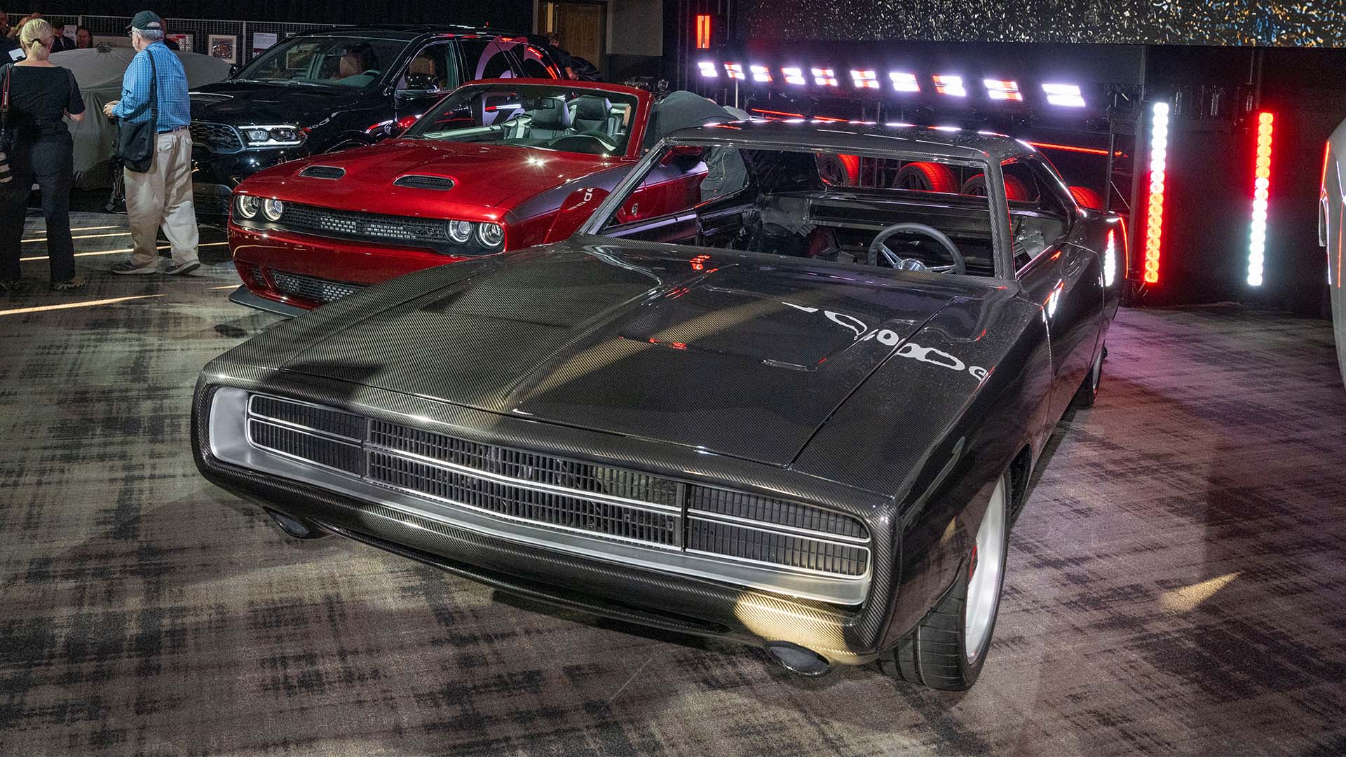 Dodge’s carbon-fiber supplier SpeedKore has created a few high-profile Dodge Charger builds. Vin Diesel’s 1,650-horsepower, 9.0-liter Mercury Marine-powered 1970 Dodge Charger ”Tantrum” comes to mind. SpeedKore also did the “Hellacious” mid-engine 1968 Charger from F9: The Fast Saga.