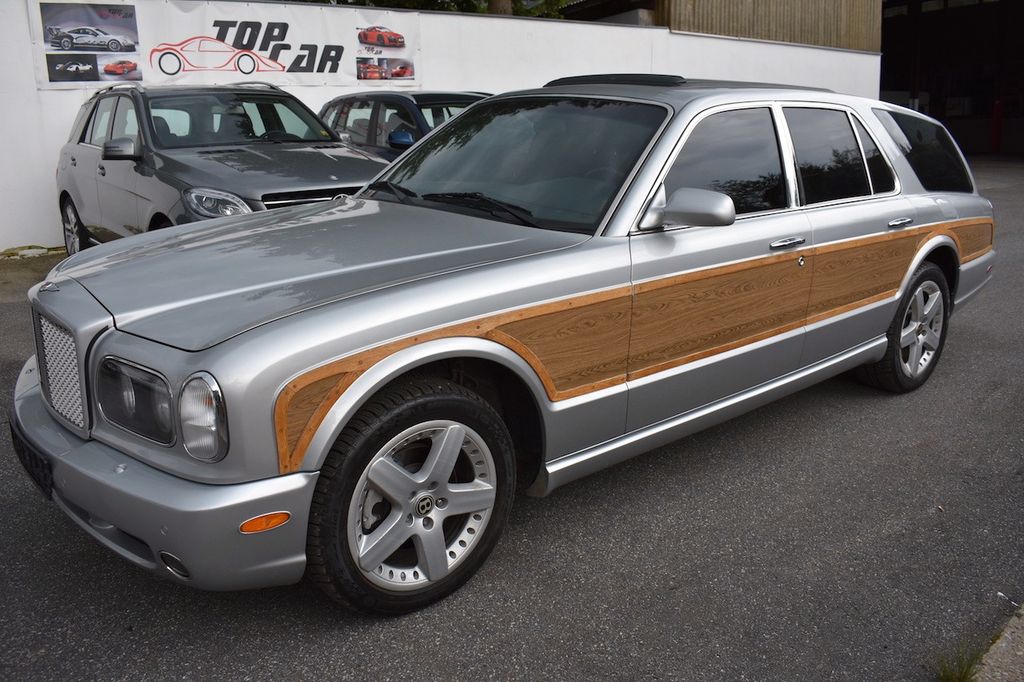 Listed on mobile.de in Germany, this 2002 Bentley Arnage was originally built in England for the heir to an Italian industrialist fortune who commissioned his car to be as multi-purpose as possible. It was sent to the United States for its first round of major modifications by Genaddi Design. They formed the station wagon body and adapted the Bentley automatic transmission to accept the all-wheel-drive system from a Cadillac Escalade. Then, they added a Webasto panoramic sunroof.