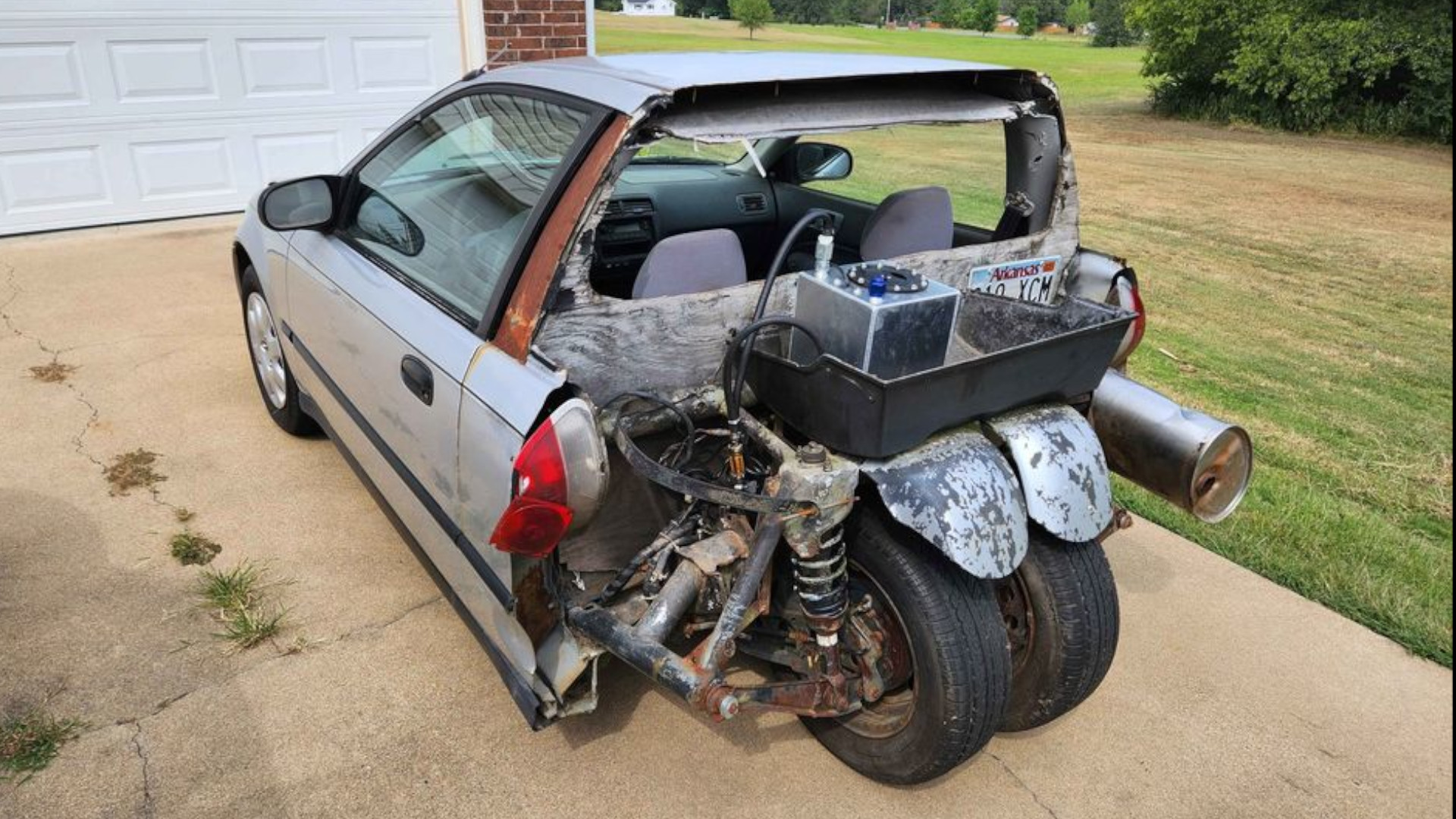As per the sale listing, this 2000 Honda Civic is known as “The Thing.” It’s located in Nashville, Arkansas, so don’t expect to visit Dollywood on your way home from picking it up. The car has been chopped at the B pillar, with the whole rear half removed. At the back, two rear wheels sit on the vehicle’s centerline, giving the car a reverse-trike layout.