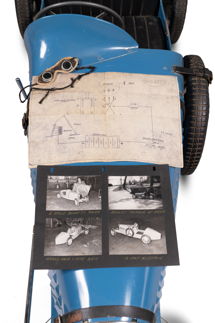 Another simply awesome piece of Bugatti history up for auction is a 1933 Bugatti Type 52 Bebe. The ’33 Bebe, meaning “baby” in French, is an electric Bugatti made for children, which would be an awesome vintage collectible. It even comes with vintage children’s goggles, as the Type 52 lacks a windscreen, and the original electrical diagram. The Type 52 Bebe was owned by Richard ‘Dick’ Teague, Vice President of Styling at American Motors, whose son used to drive the car regularly, as seen in photos that come with the car.