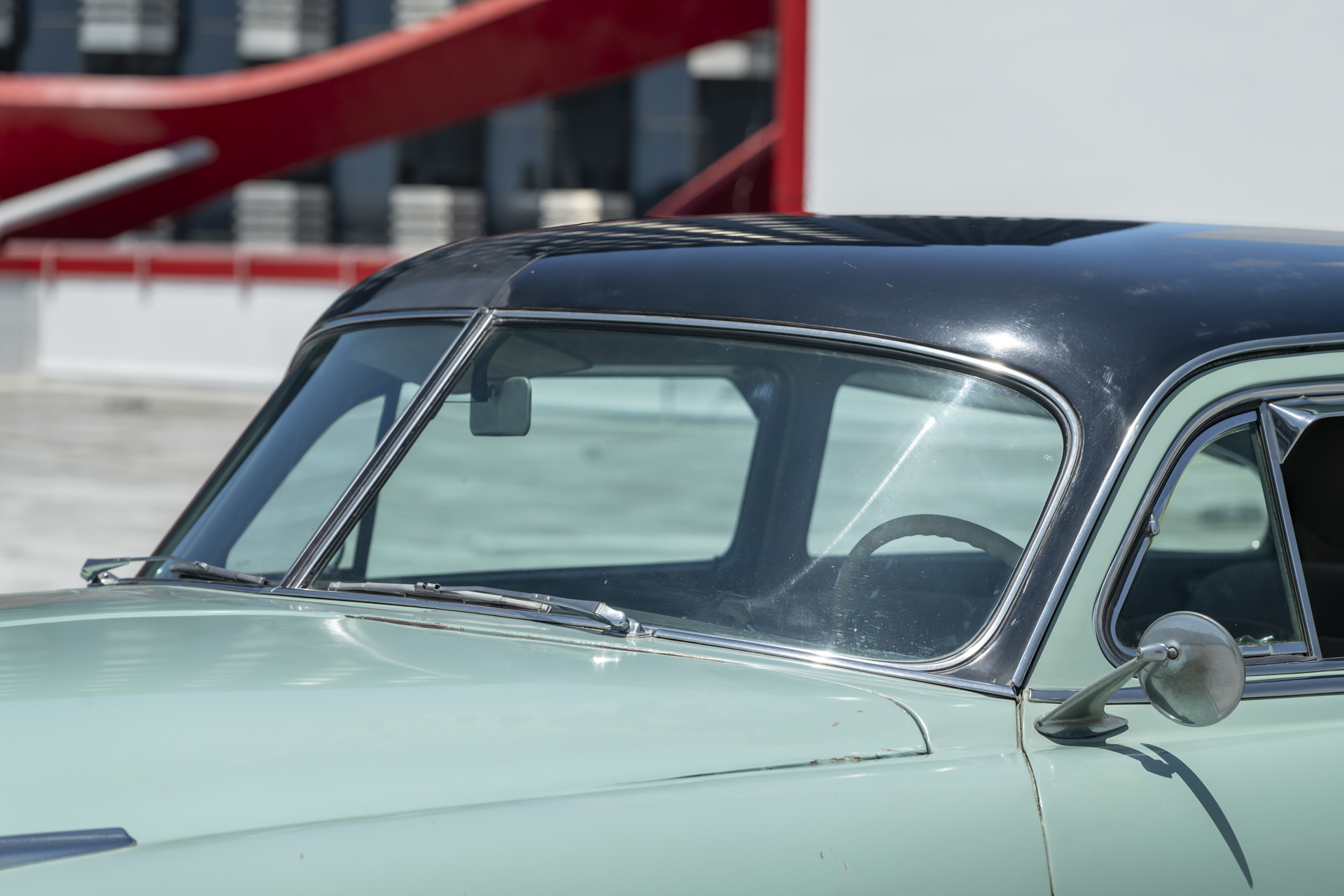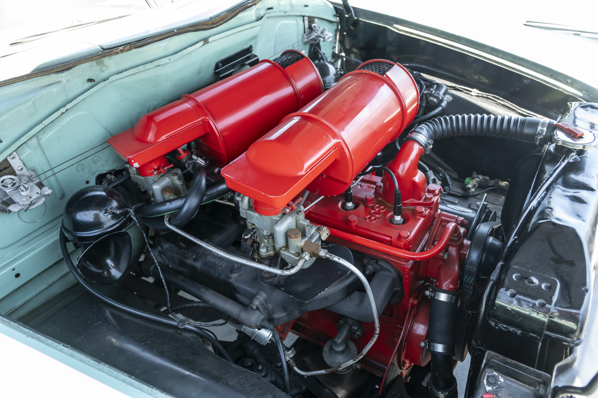 Under the hood is an inline six with a Power Dome cylinder head and Twin-H Power carburetor setup. It has a Hydra-Matic Drive transmission with a column shifter.