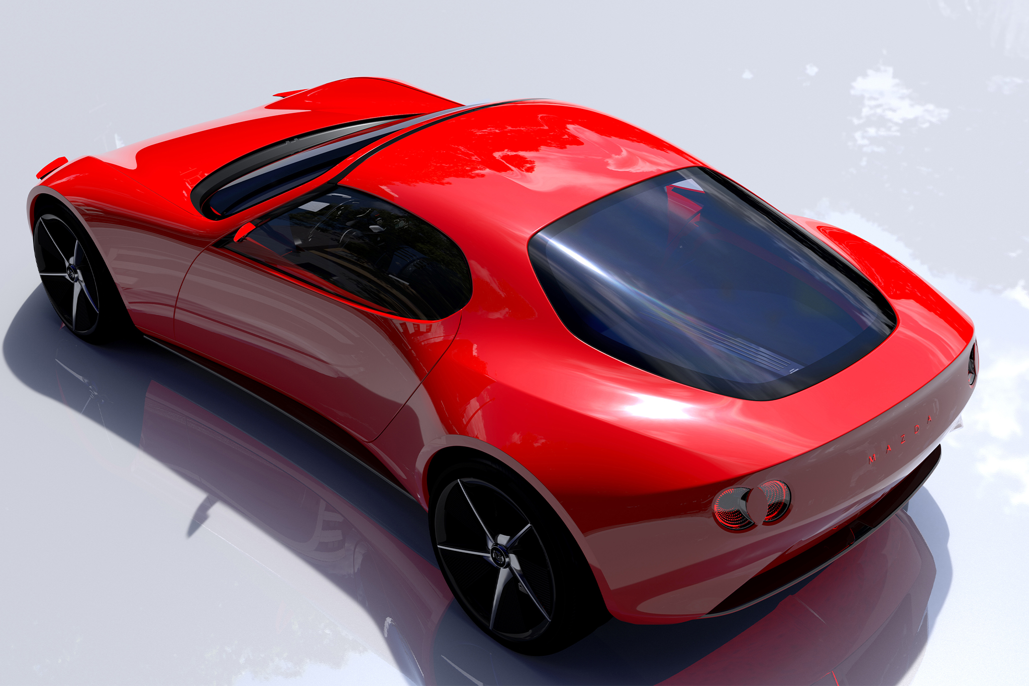 And how. We can be happy or sad about whatever shape electrification takes here, but we should at least agree on the design. It looks killer, doesn’t it? The photos Mazda provided here aren’t the best but the RX inspiration is clear, especially in this rear three-quarter view. The rear deck is really wide, but the transition from the long hood to the cockpit to the back of the car is so natural.