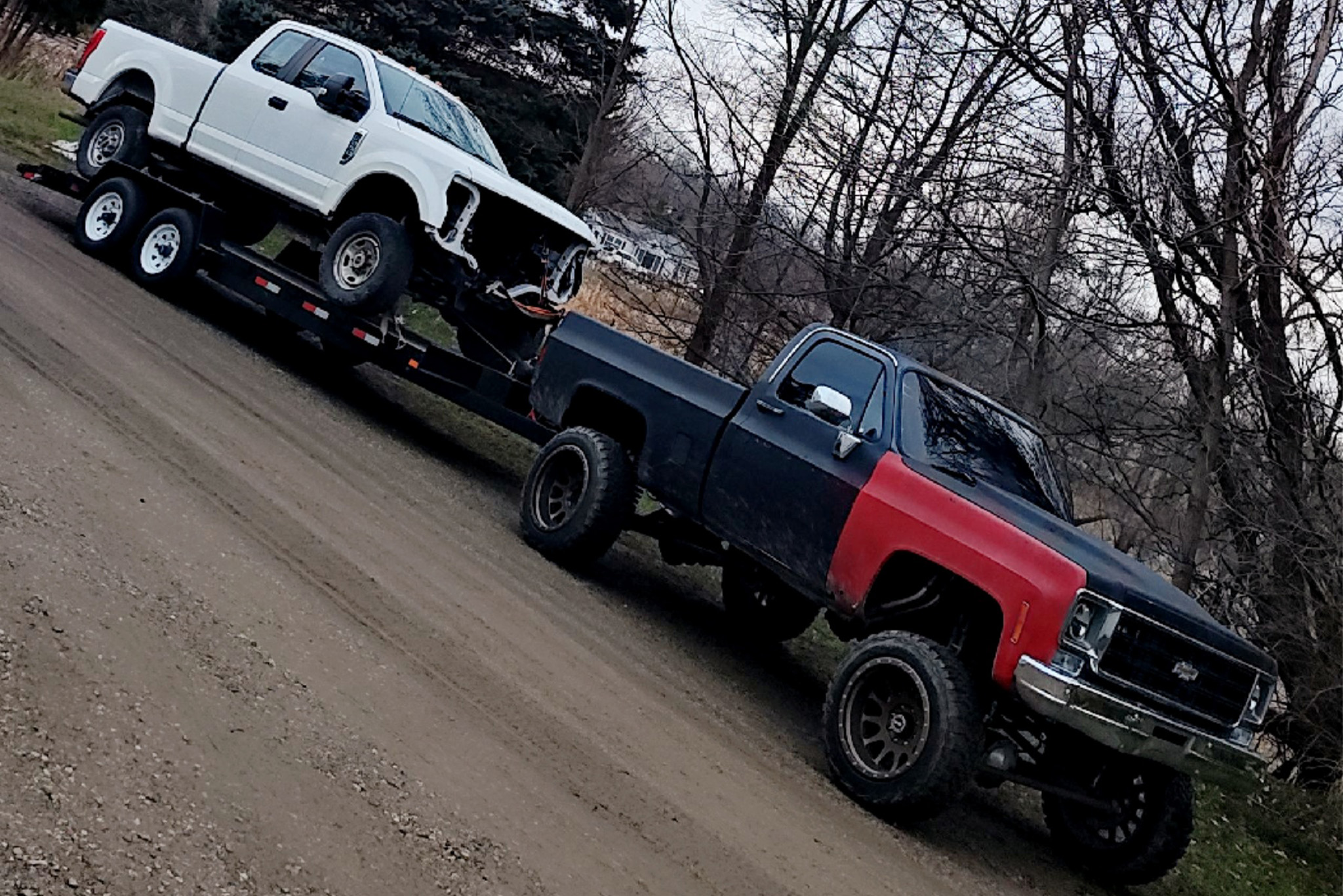 Since he lives in Michigan, in the heart of the Rust Belt, he wanted a 2017 or newer Super Duty since their bodies are made entirely of aluminum. Thompson found this rig listed by a local dealer on Facebook Marketplace without a transmission or a transfer case, so he offered $6,500 and they took it. Before long, he was dragging the extended cab home.