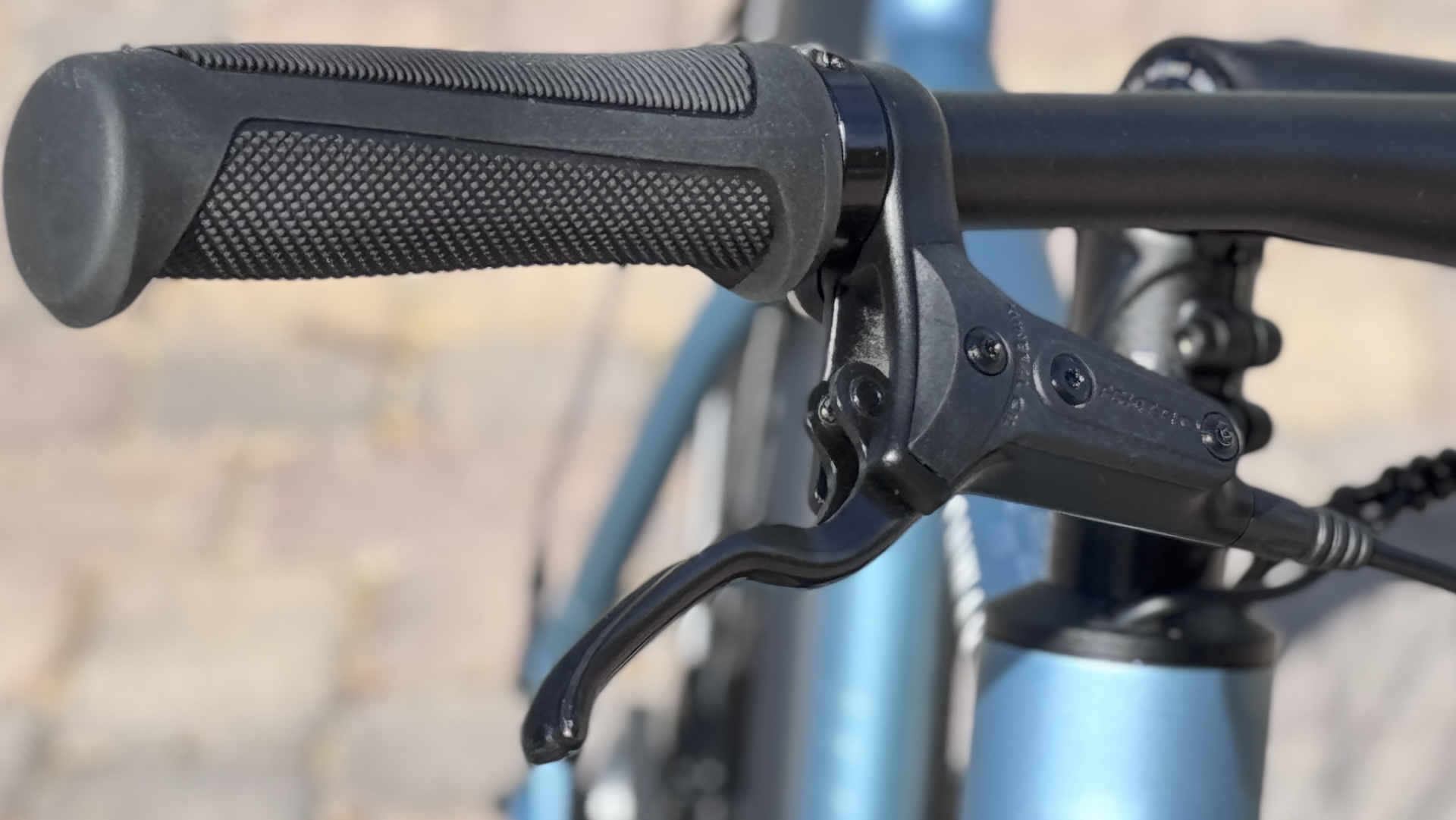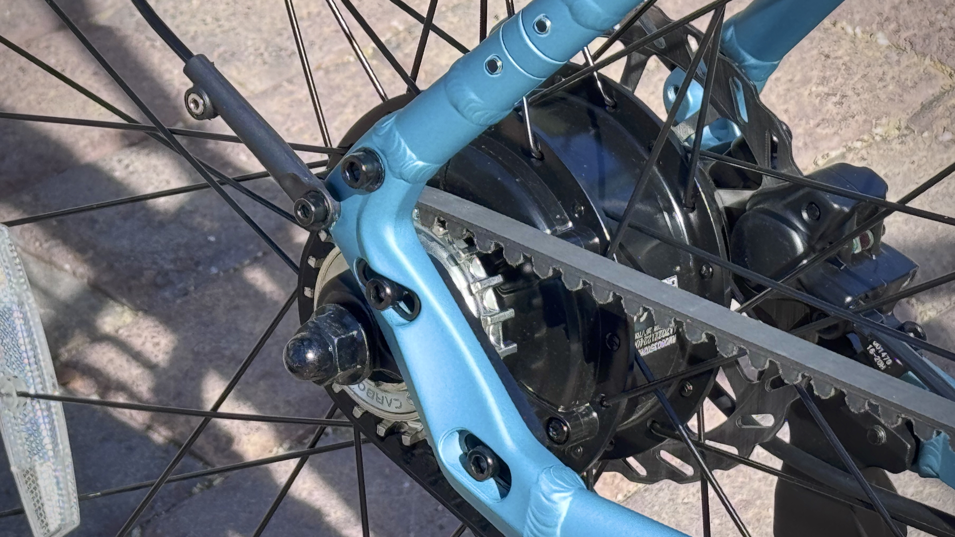 For e-bikers looking to make a statement, this isn’t the bike for you. It’s a good-looking, albeit conservative bike that requires some inspection to even notice the battery in the downtube or the 350-watt motor in the rear hub. It rides like a normal pedal bike. The single-speed gearing is pretty high if you’re trying to get going with no or minimal assist. But the lack of a derailleur, along with the use of a Gates Carbon belt drive, means the drivetrain is essentially maintenance free.