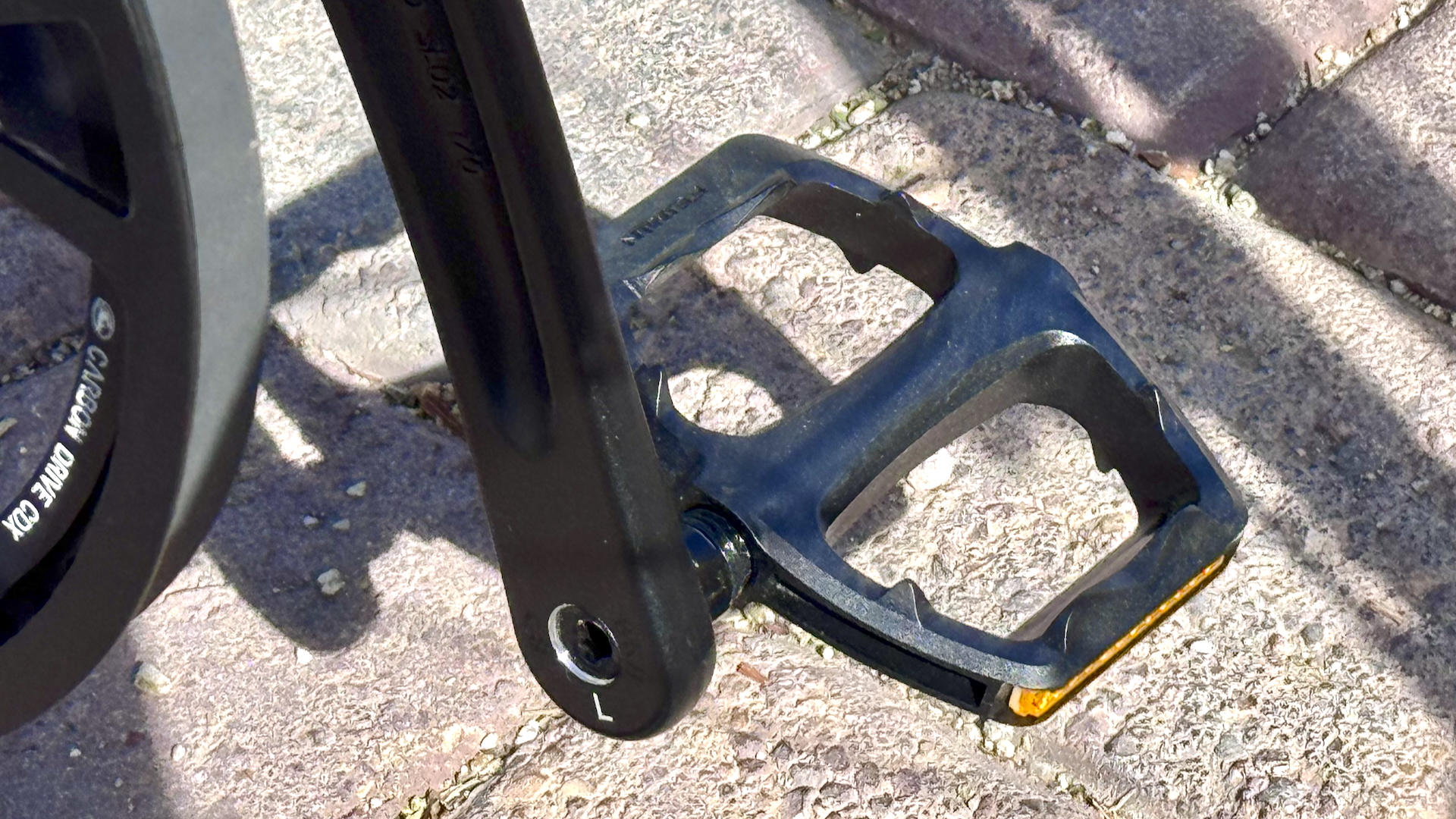 The saddle is another sore spot, ahem. The ideal bike saddle choice is unique to every person. There’s an almost endless variety of sizes and shapes out there, so it’s rare that you will find a stock saddle is your ideal choice. The pedals on the other hand could be improved for everyone. They offer very little grip, even on soft-sole sneakers. I have size 13 feet, so I like a bigger pedal, so besides the grip, I would like something with a larger platform.