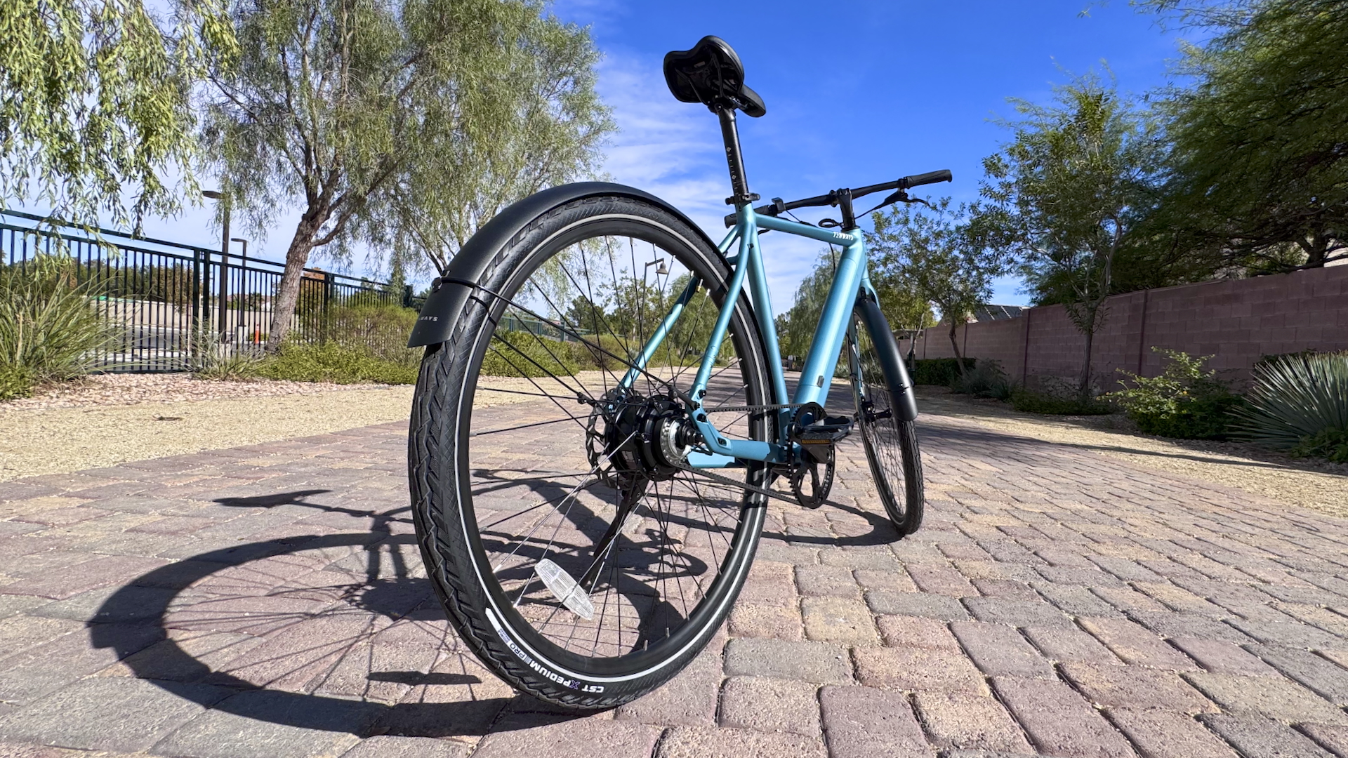 The bike is just over 42 pounds complete. It feels that heavy when you’re moving it around your garage or trying to lift it into a maintenance stand. On the road, it handles like most commuter bikes. It’s more responsive than a modern mountain bike, but certainly doesn’t dive into corners like an actual road bike. If this were my bike, the first thing I’d change is the puncture-proof tires which ride like wood. I’d also opt for new pedals with more grip and risk the shin-raking. For non-cyclists who haven’t ridden since grade school, this will be the nicest bike they’ve ever owned. For cycling enthusiasts, it’ll feel like a decent urban commuter bike. At $1,699.00, it’s a relatively good value for an aluminum e-bike with hydraulic disk brakes and a real gates drivetrain.
