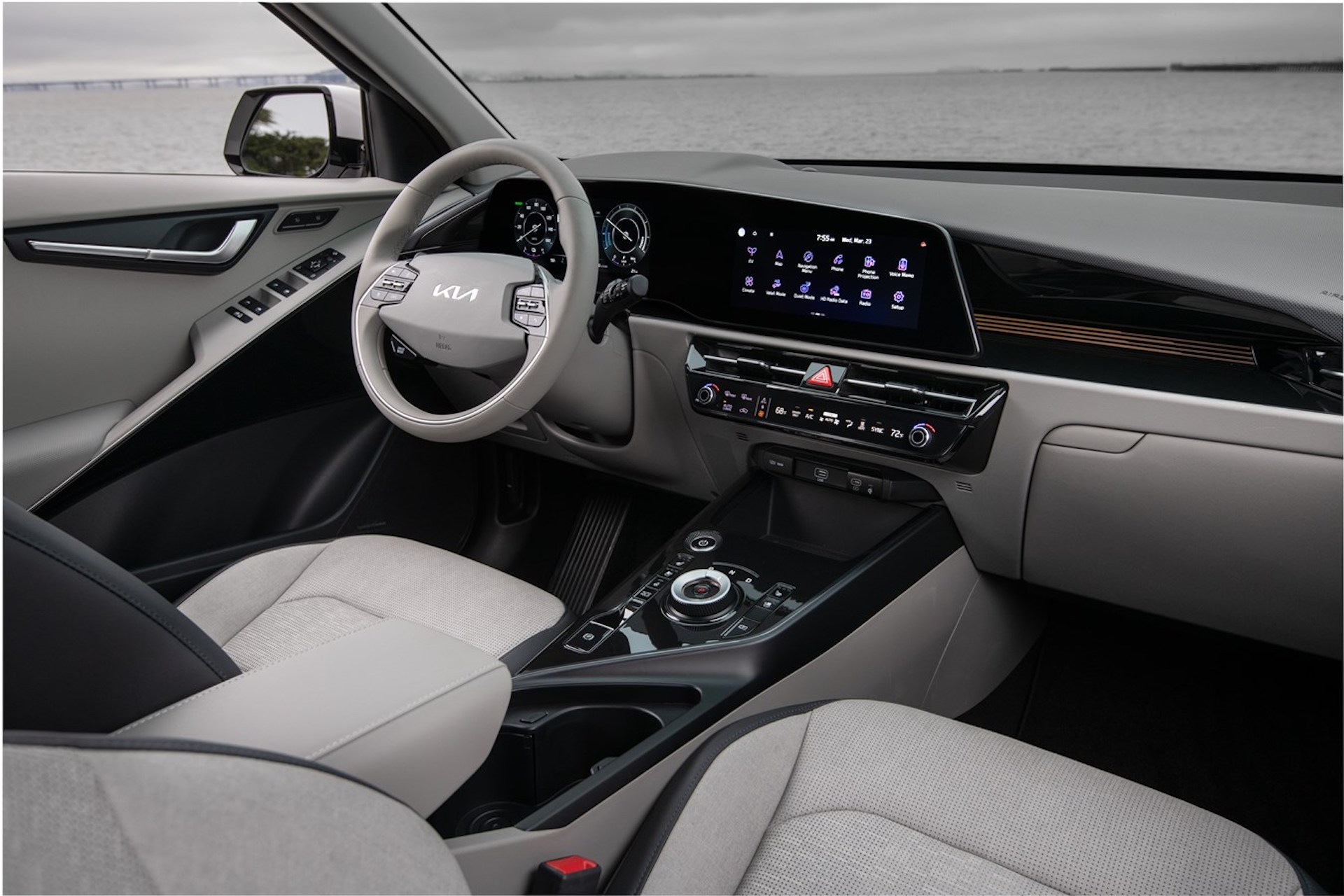 Inside, Kia’s home run continues, with a clean, well-thought-out cabin. The lines are clean and the controls are well organized through the center stack and console. I’m not a fan of the two-spoke steering wheel—not just this one, any two-spoke wheel—because they tend to look somewhat cartoonish most of the time. All things considered, the Niro’s wheel design plays well with the rest of the car, though.