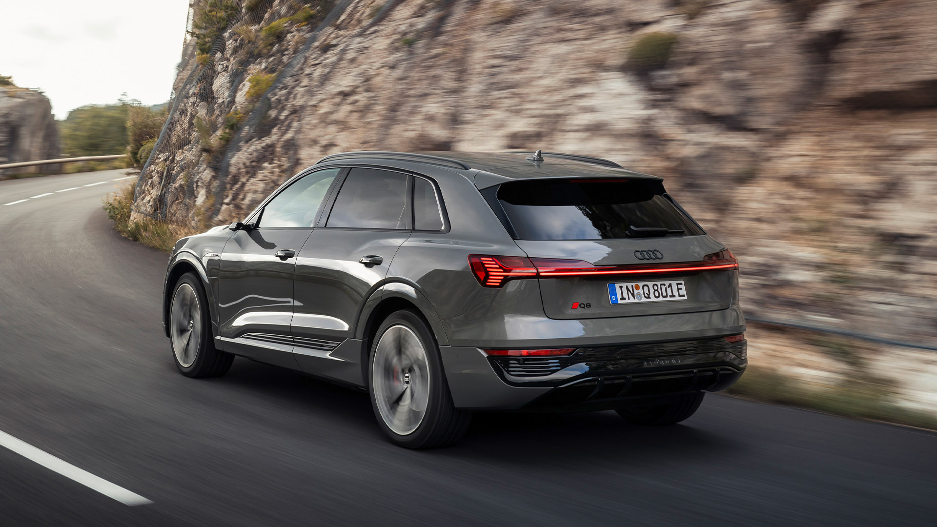 Audi says that the increase in range is thanks to a redesigned rear-axle motor with a higher number of stator coils, effectively increasing the number of coil turns from 12 to 14. This allows the motor to become more efficient and generate a higher magnetic field. Audi also changed the SUV’s torque vectoring and altered several areas of vehicle aerodynamics (hence its familiar shape, albeit a new face) which dropped its overall drag coefficient. The result is an impressive range increase of nearly 33% in the base Q8.