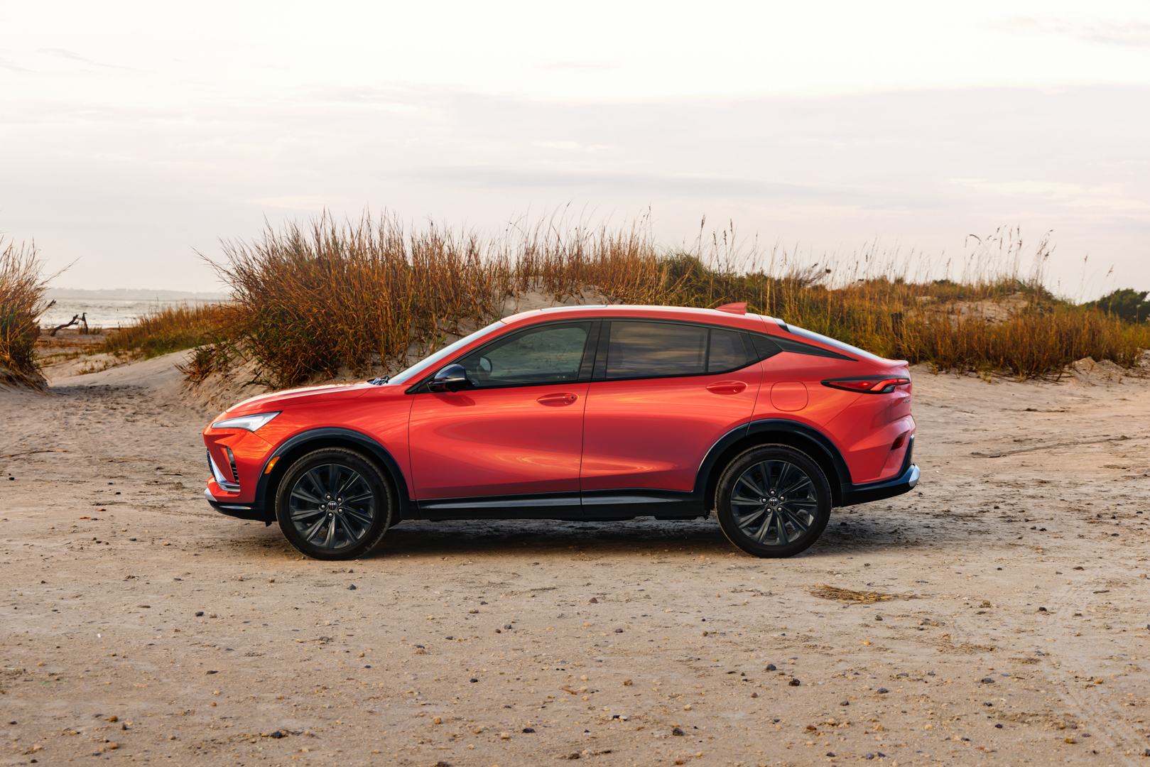 The Envista is Buick’s take on sporty-looking crossovers like the Audi Q3 Sportback or Genesis GV60, with a sleek roofline and a floating C-pillar. Up front, the Envista has Buick’s new badge, which ditches the outer ring of the tri-shield logo, and it’s also now mounted on the body instead of in the grille. It’s a more modern look that separates the Envista from some of the older, stodgier SUVs in Buick’s lineup.