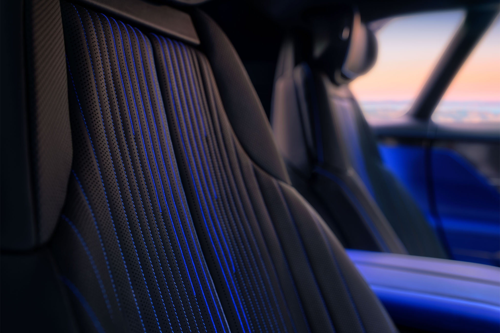 Interior silence is further enabled not only by the car’s two-motor electric drivetrain, but by the laminated glass for every transparent surface, besides the roof panel. The roof panel gets a bit more attention than simple lamination. It is the largest piece of automotive glass in the world and is more than a quarter-inch thick and features active dimming and ambient lighting. Each passenger can individually tailor the level of tint in their zone from less than 1% all the way up to 20%, the latter figure being the industry standard for sunroof transparency. The LEDs that edge-light the roof panel are also just one part of the car’s illumination system. There are over 1,600 individual LEDs in the Celestiq.