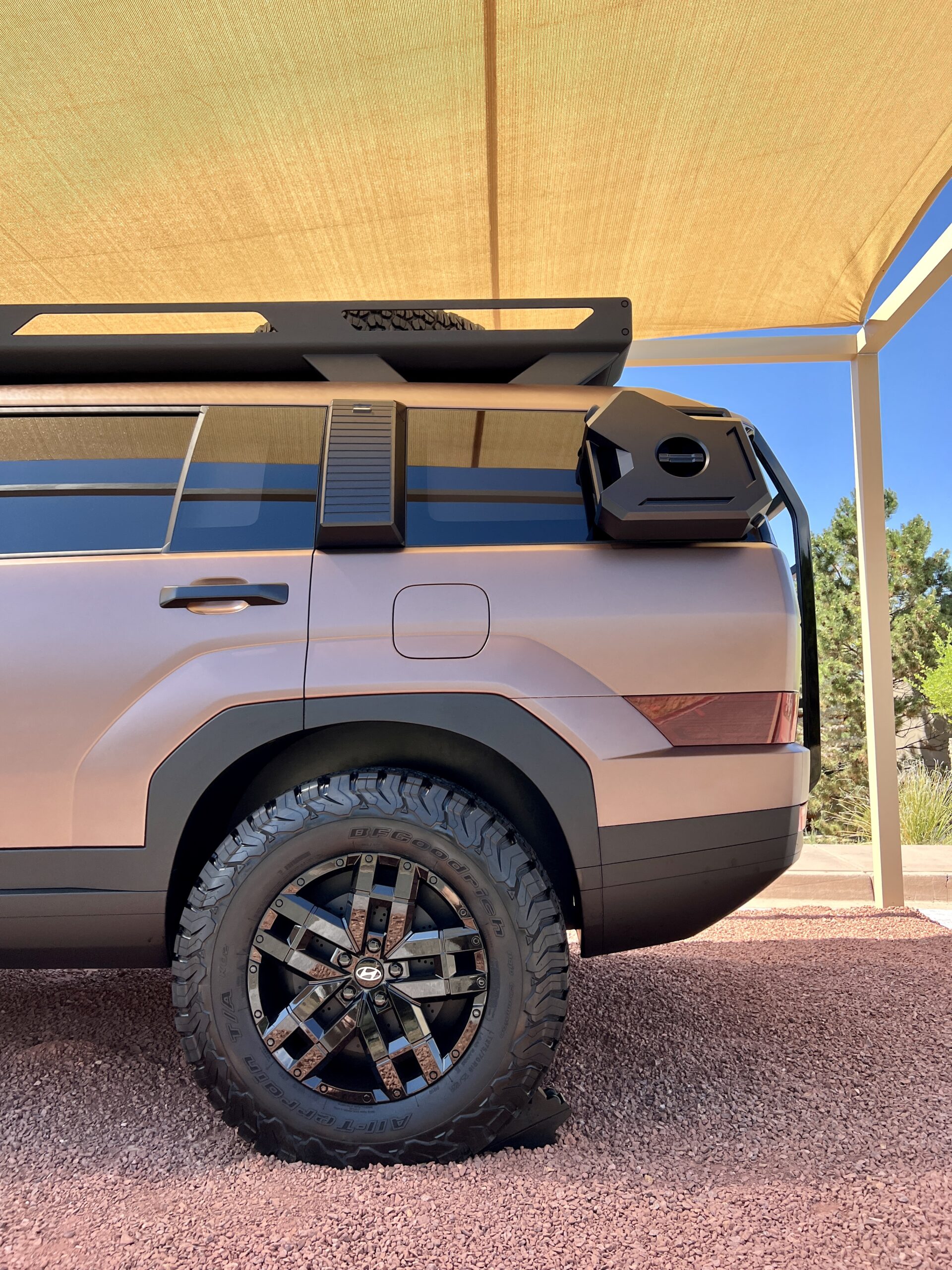 Off-road hardware upgrades on the launch cars are limited to new shocks with dual-frequency tuning and an advanced air analysis and filtration system, according to Hyundai’s technical team. It’s no Toyota Land Cruiser, but it should be enough to tackle a dirt road or light trail without issue. However, Hyundai expressed its intent to go more rugged with a Santa Fe XRT Concept on display at the launch event. Sporting BFGoodrich all-terrain tires, a metal roof rack, and side-mounted auxiliary storage, the XRT Concept gives off strong adventure vibes, but we’ll have to wait until November to learn more about its hardware.