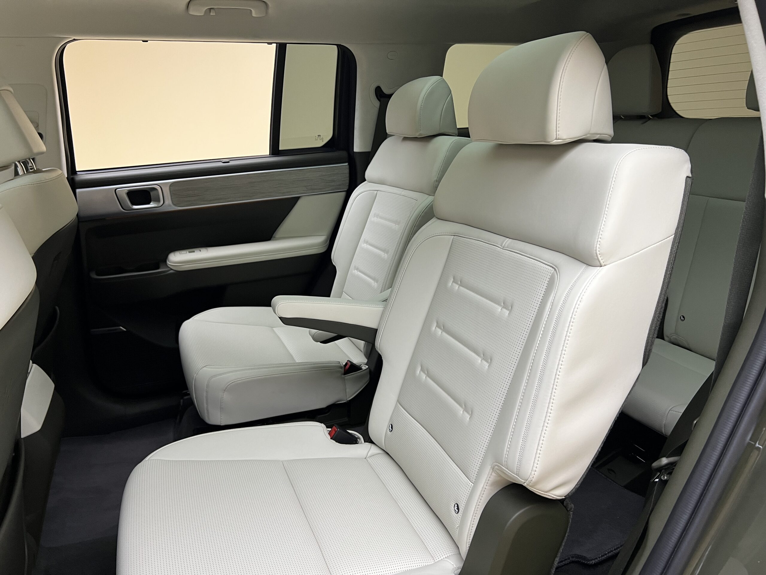 Up front, a column-mounted rotary shifter similar to those in Hyundai’s Ioniq models frees up space for dual wireless smartphone chargers. The driver and passenger also get useful storage cubbies between the seats and a Panoramic Curved Display which combines the 12.3-inch digital cluster and infotainment system into one long screen that curves toward the driver. Mercifully, there are still physical buttons for climate control and audio on the console and steering wheel—Lee is a noted big fan of tactile controls for safety reasons. Hyundai’s excellent Highway Driving Assist 2 ADAS is onboard, of course, but there’s also a new Driver Attention Warning system that uses cameras to monitor the driver and warn them if they begin to doze off behind the wheel.