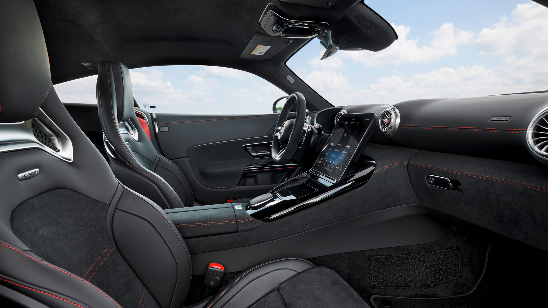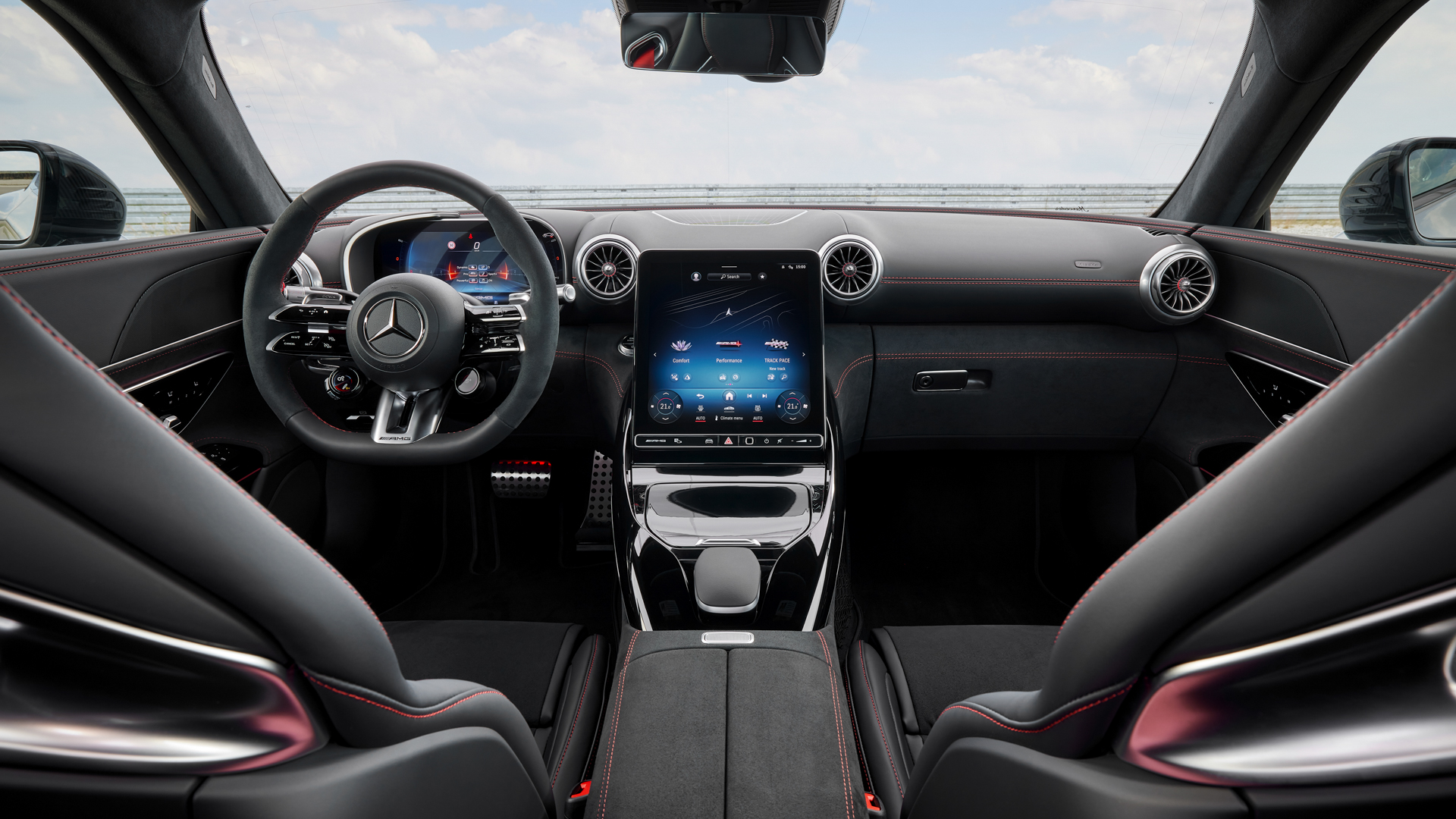 Well, the AMG GT Pro has all of the same suspension goodies as the hybrid version, including AMG’s clever hydraulic Active Ride Control with active roll stabilization and rear-wheel steering. It also has additional brake cooling, standard carbon ceramic brakes, and active cooling for the all-wheel drive system. More carbon fiber air deflectors up front, a fixed carbon fiber rear wing, and active underbody aero should improve aerodynamics, too. Oh, and it gets ultra-sticky Michelin Pilot Sport Cup 2 R Extreme tires wrapped around its 21-inch split five-spoke wheels.