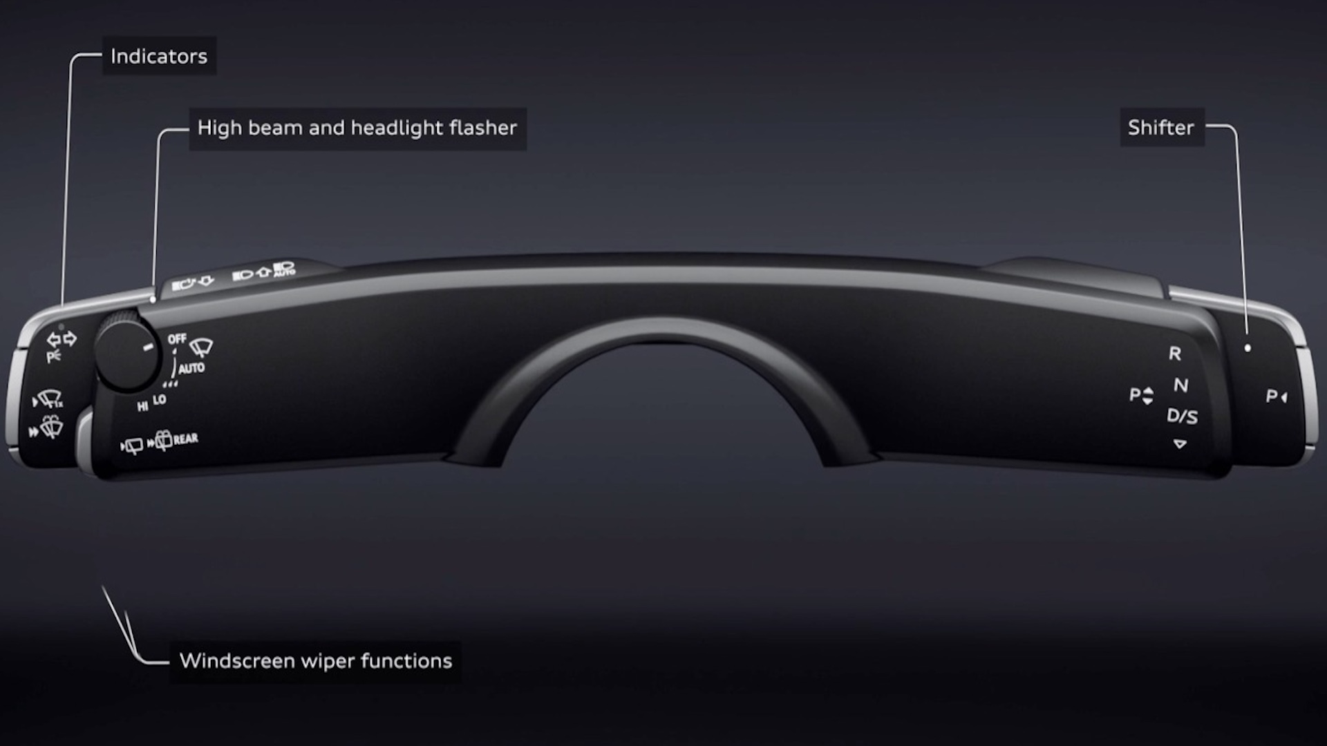The control center has been dubbed “the switch module” and features one piece of plastic that drops down over the steering column with “stalks” shooting off each side.