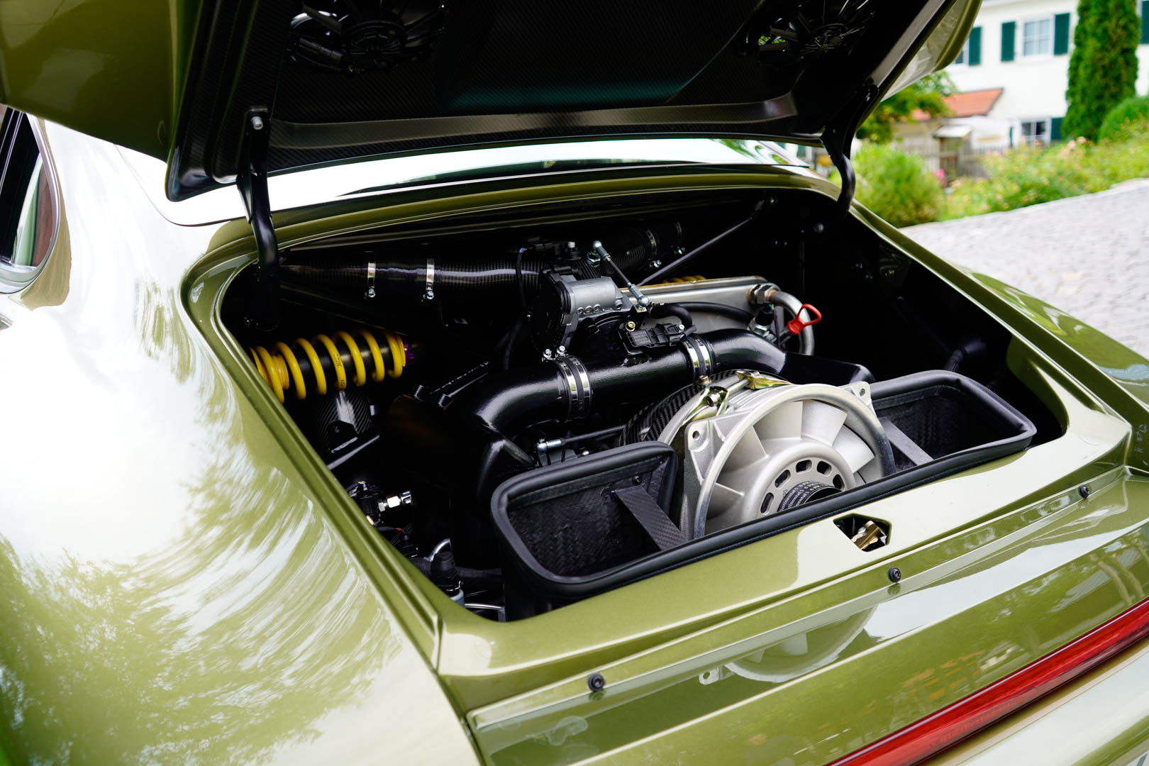 Peek into its rear engine bay and you’ll find pushrod-actuated coilovers, again similar to what’s inside the CTR Anniversary. Its double-wishbone suspension and brakes—six-piston front, four-piston rear—carry over, too.