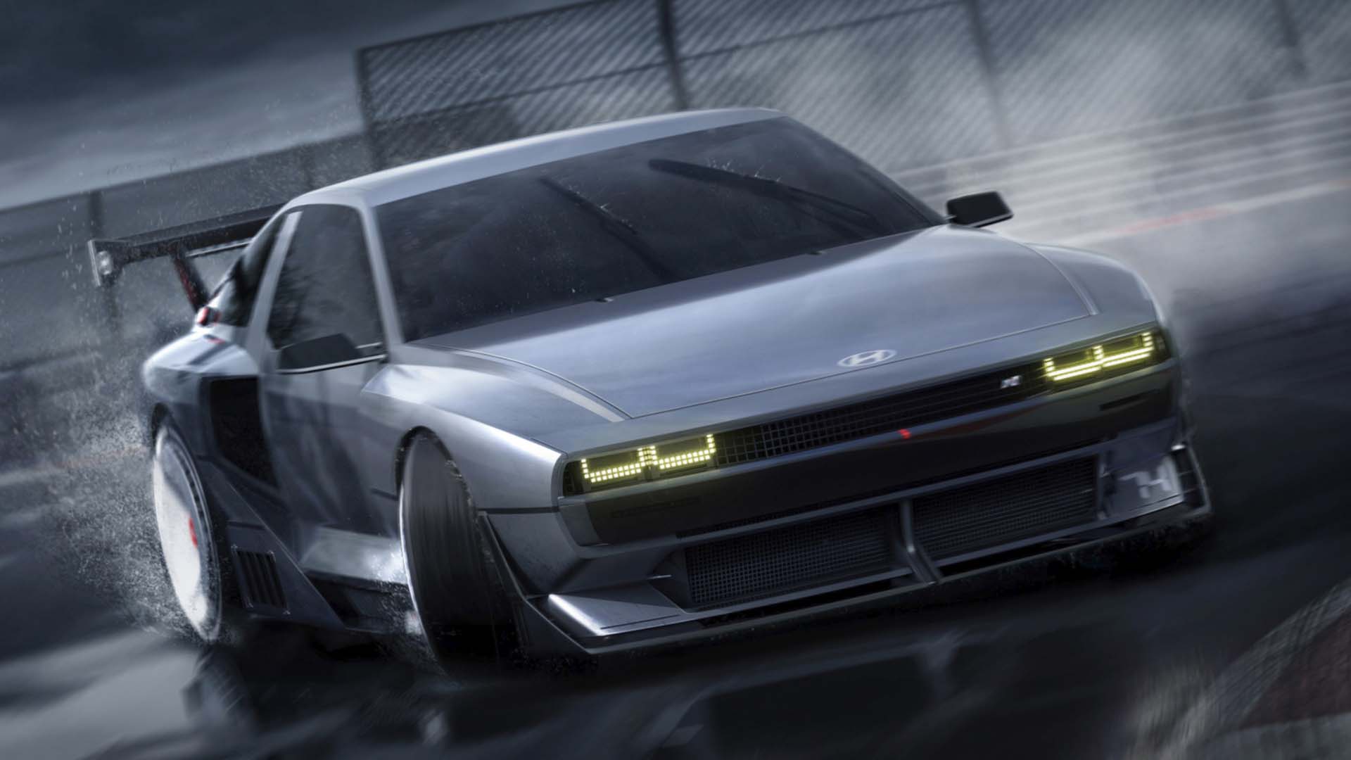 Hyundai’s concept isn’t really talking to that bit. The gun metal grey and black two-door isn’t the lurid plastic enthusiasm of cars as a lifestyle item—it’s using ideas from just before that.