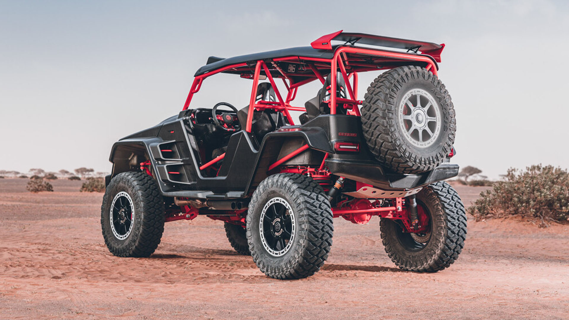 In truth, Brabus does not give a price for this machine, but it’s only going to make 15 of them if that tells you anything. What’s more, the specs beyond the 900-horsepower V8 and the carbon body make it clear this isn’t gonna be cheap. The V8 is mated to a nine-speed automatic transmission that sends power to all four 20-inch forged wheels, and bespoke, fully-adjustable bilet aluminum shocks help maintain the truck’s nearly 21 inches of ground clearance. On paper, though, it has some mechanical similarities to a regular G-Wagen, with independent front suspension up front complemented by a rugged straight axle in the back. It does seem to share very few parts with that truck, though.