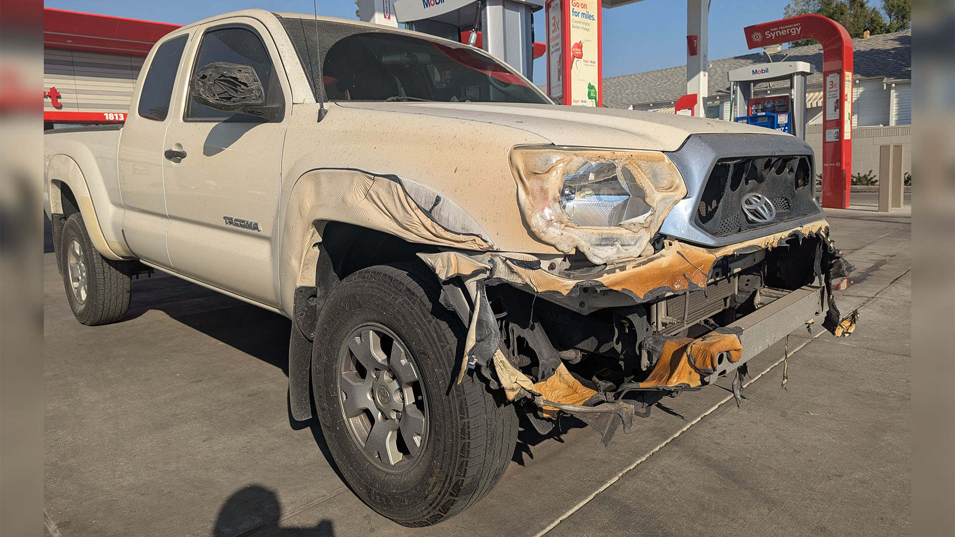 Toyota trucks from that era are known for being pretty indestructible. We all remember when Top Gear spent an entire episode trying to ruin a Toyota Hilux pickup. And while the Tacoma and Hilux are different models, this Tacoma survived a real-life tragedy, not made-for-TV stunts. How it didn’t burn or melt in the fire could be a matter of luck—maybe the intense flames just happened to miss it. They couldn’t have been far, as the debris of former houses stood only feet away. Not only did the Tacoma not burn to the ground, but even all of its wiring harnesses, plastic connections, and hoses survived the heat without melting, allowing the engine to start right up.