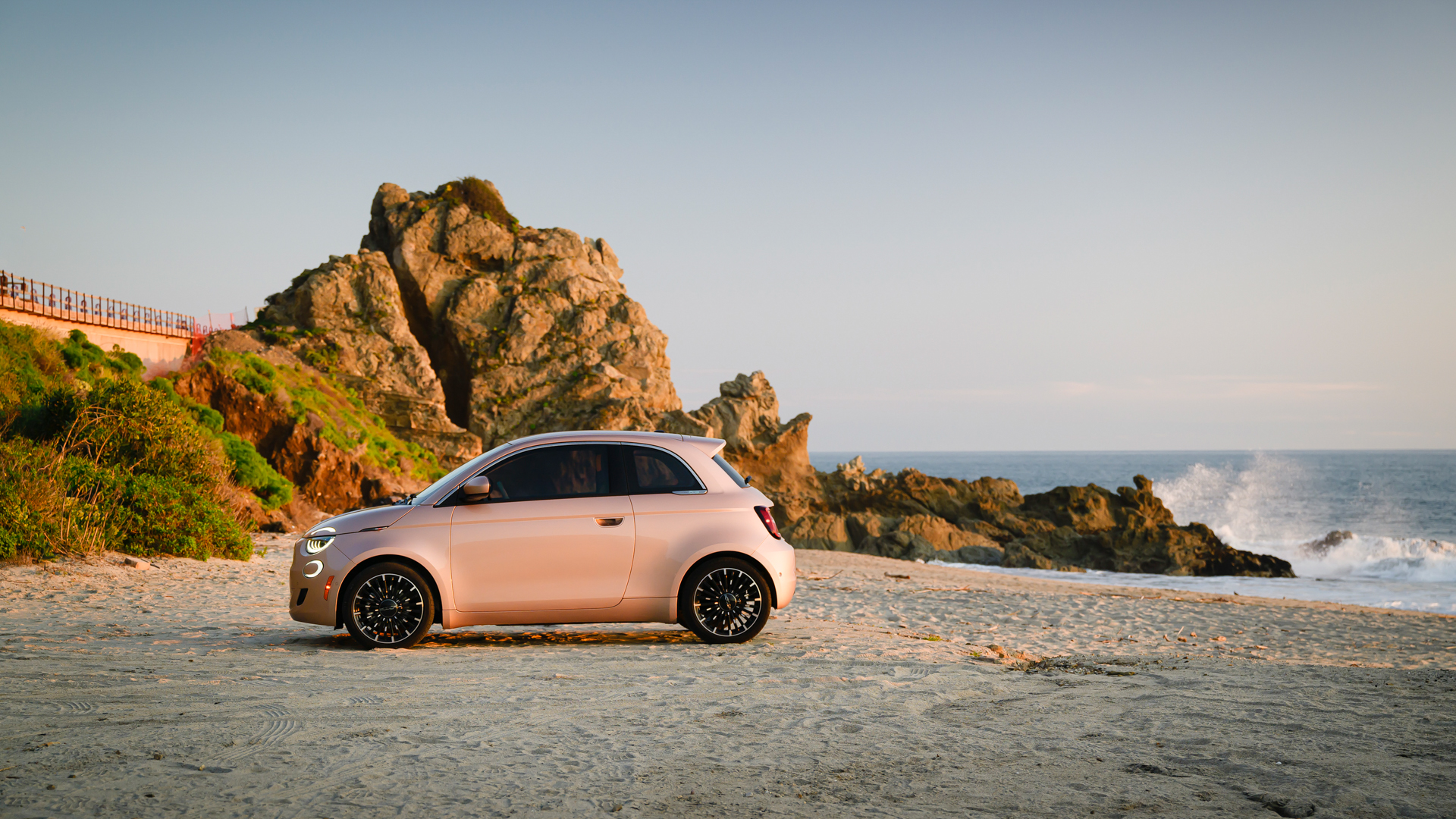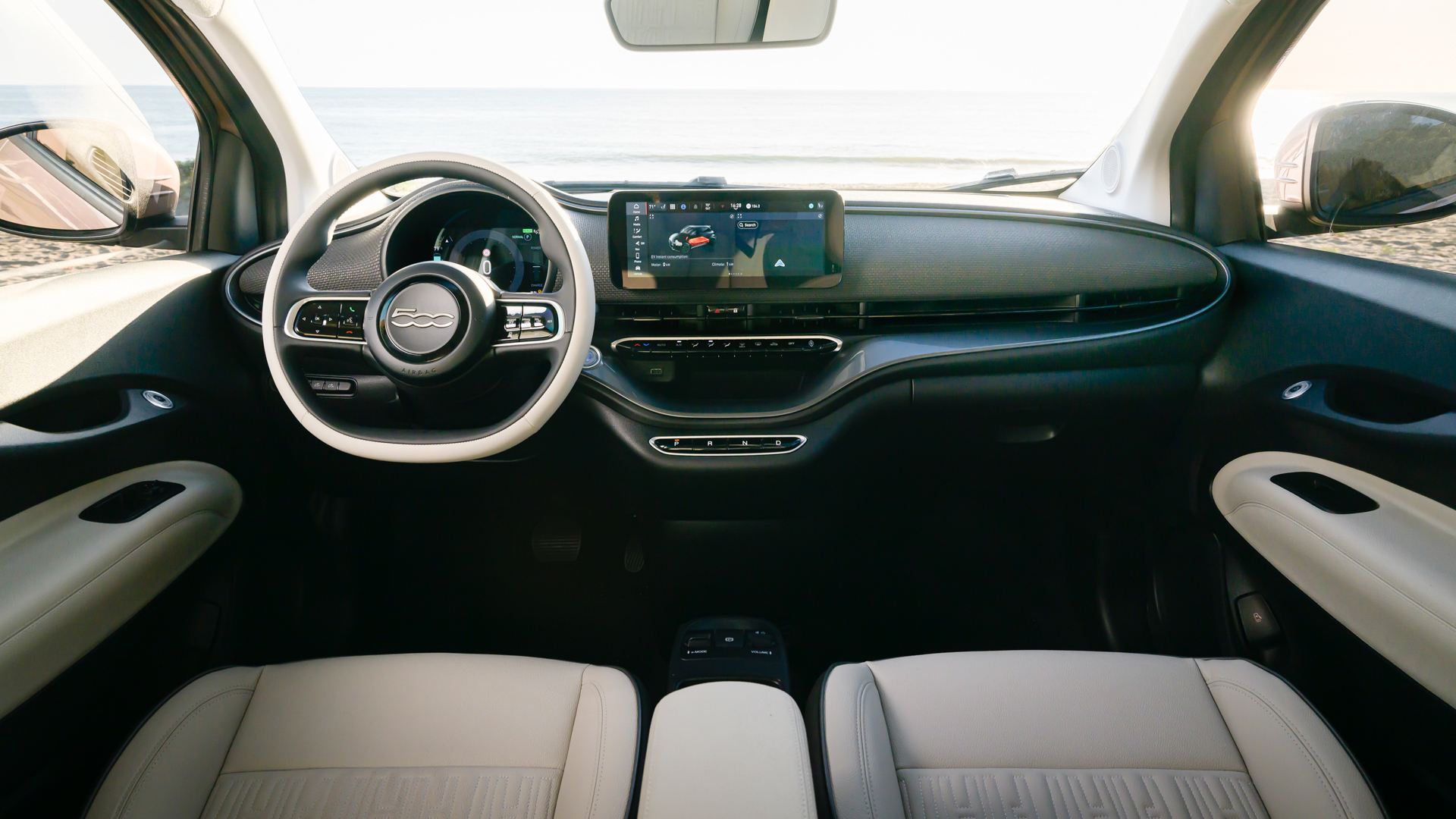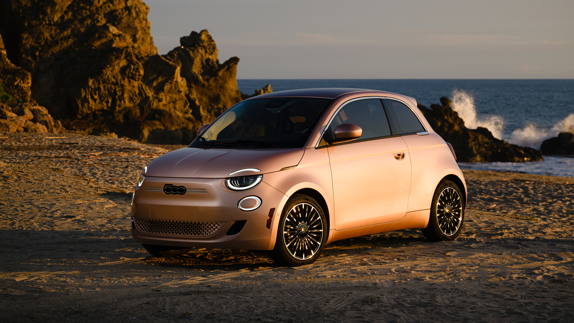 Let’s start with beauty, shall we? The Fiat 500e Inspired by Beauty comes with unique Rose Gold paint and body-colored mirrors, along with some chrome window trim. Inside, it gets beige eco-leather on the seats and dashboard. And that’s it, really.
