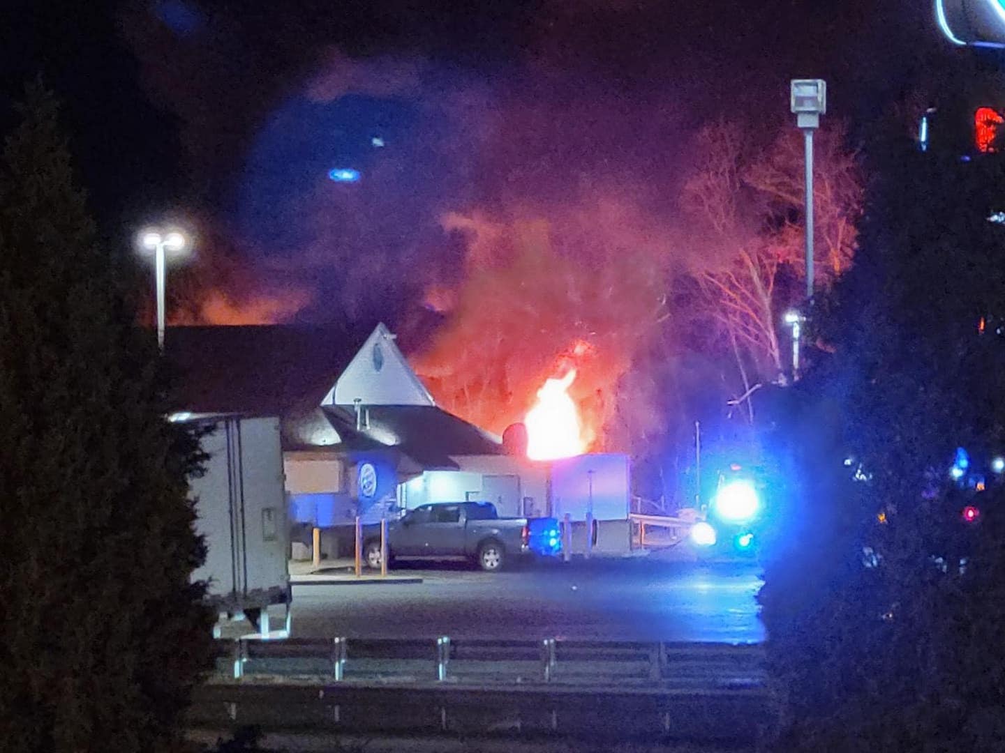 Responders ended up moving the car into a roll-off dumpster, which would contain the fire if it reignited, though it was not used to douse or submerge the vehicle as previously rumored. Extinguishing the fire reportedly consumed 8,000 gallons of water in all, and was complicated by the incident not occurring near a fire hydrant. Due to the extreme heat of combusting lithium-ion batteries (exceeds 3,600º Fahrenheit according to Envista Forensics) the rest stop itself sustained significant damage. Its siding (reportedly aluminum) warped and its windows cracked despite being 55 feet away.