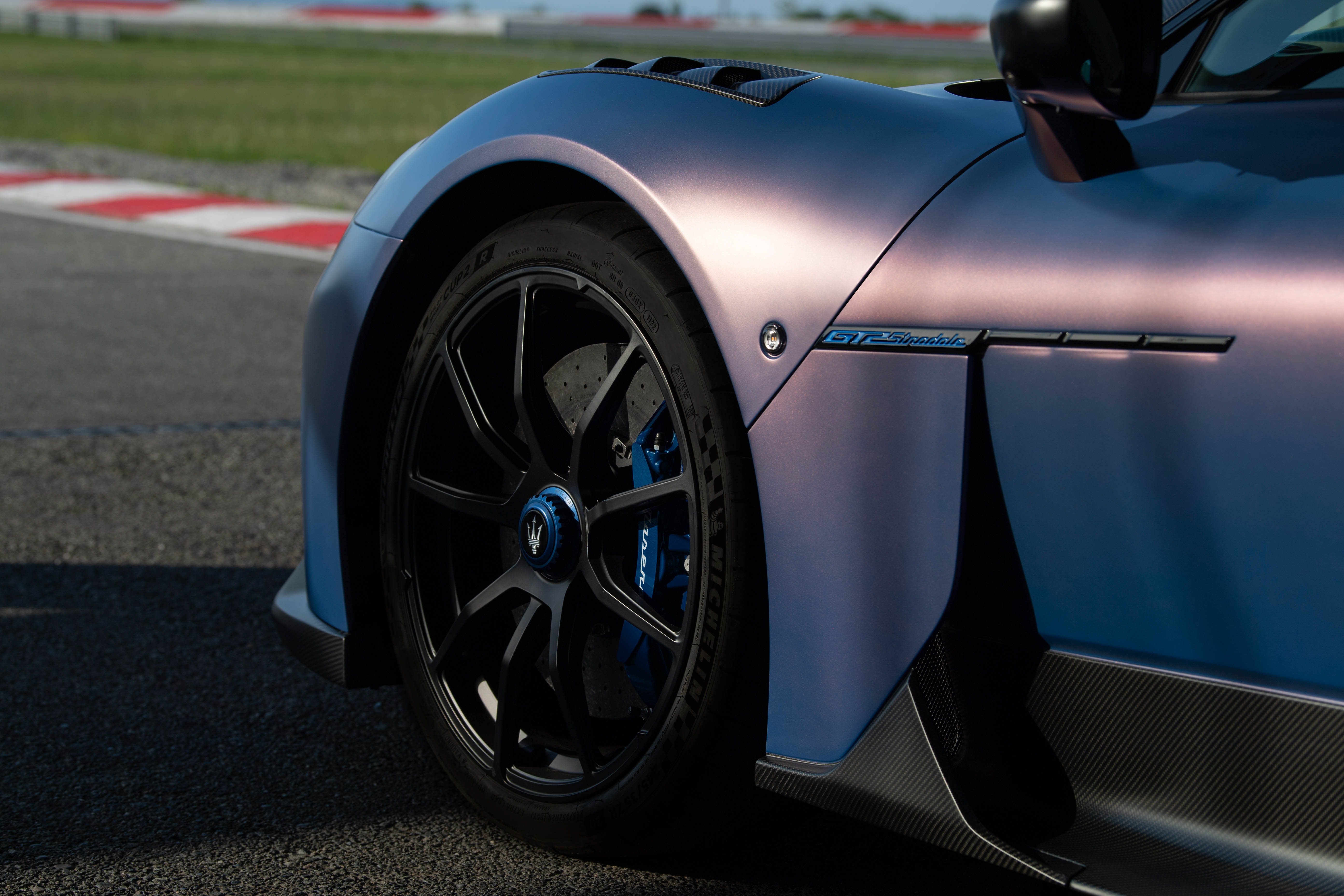 The massive rear wing and front spoiler can apparently generate up to 1,102 pounds (287 pounds up front and 816 pounds at the rear) of combined downforce at 174 mph in its most aggressive “High-Drag” settings. Both ends are manually adjustable, so if owners want a less aggressive setup, they can have it.