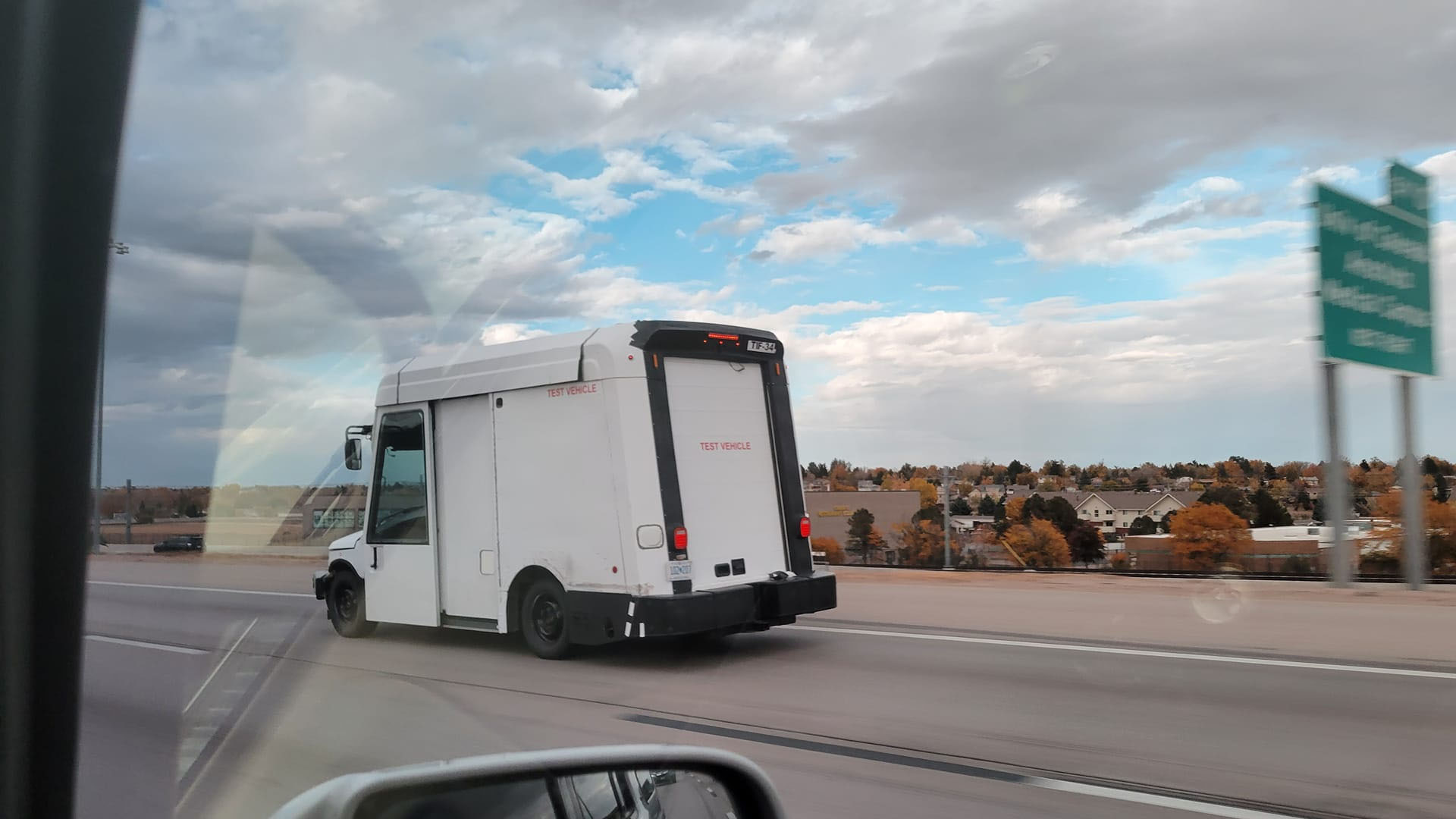 The vehicle is formally known as the Next Generation Delivery Vehicle and it’s produced by the Oshkosh Corporation, which makes many other vehicles primarily for the U.S. military. We’ve reached out to the company to see what these NGDVs were doing in Colorado. If the “test vehicle” labels on the carriers are any indication, they were probably out testing in high-altitude conditions and Colorado has plenty.