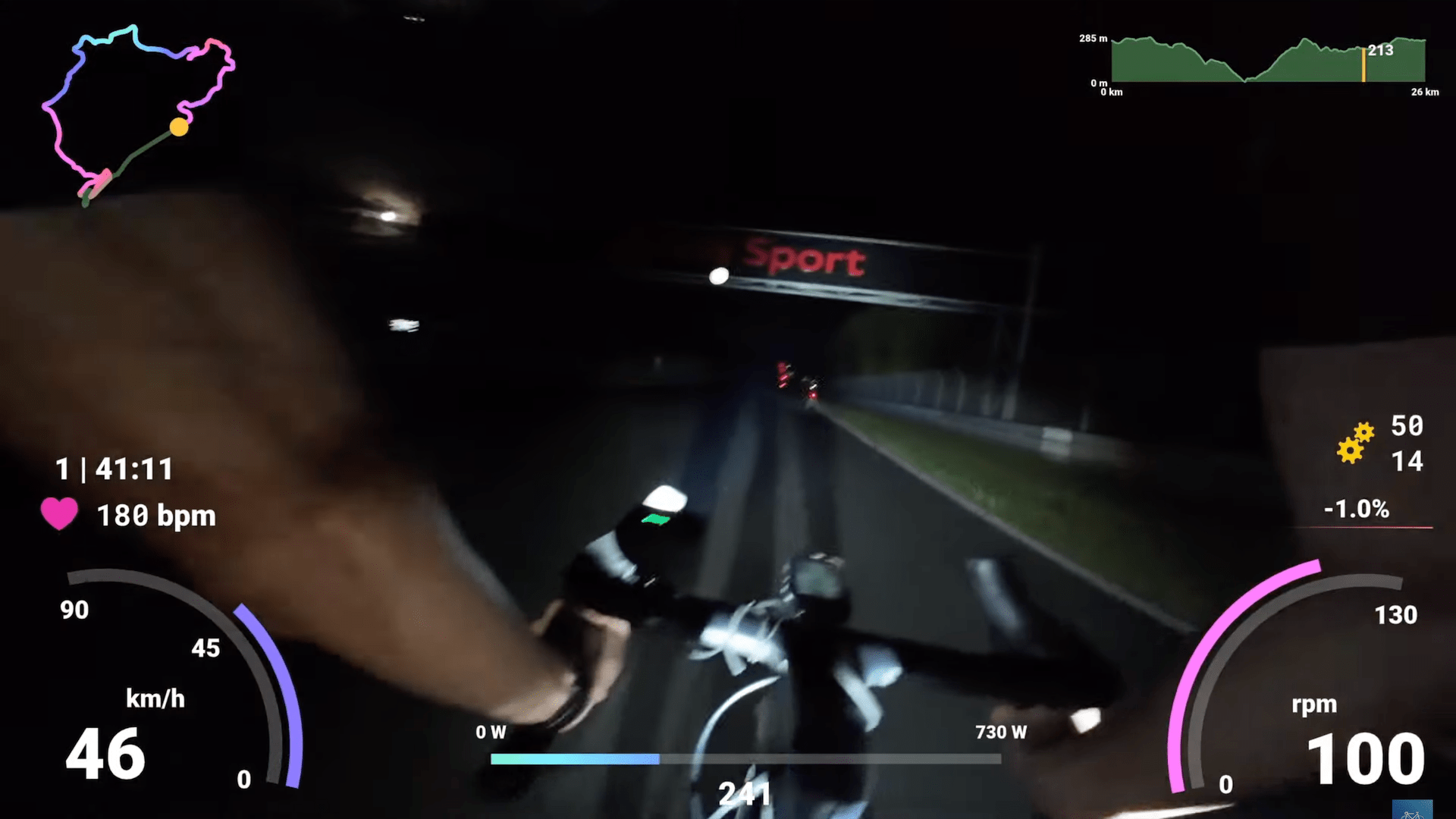 The 24-hour race links the track’s Grand Prix circuit and the Nordschleife for a combined length of 16.2 miles. Along the way, riders find their way around 92 corners and traverse 1,837 feet of net elevation change. At times, the grade reaches as steep as 17 percent, or enough to make truckers and cyclists sweat alike. The flip side of that, though, is how gravity helps riders come back down at speeds that can exceed 60 mph—powered only by their Chevrolegs. That said, race speeds over a whole lap average out to more like 20 mph, with your typical lap taking around 50 minutes to complete.