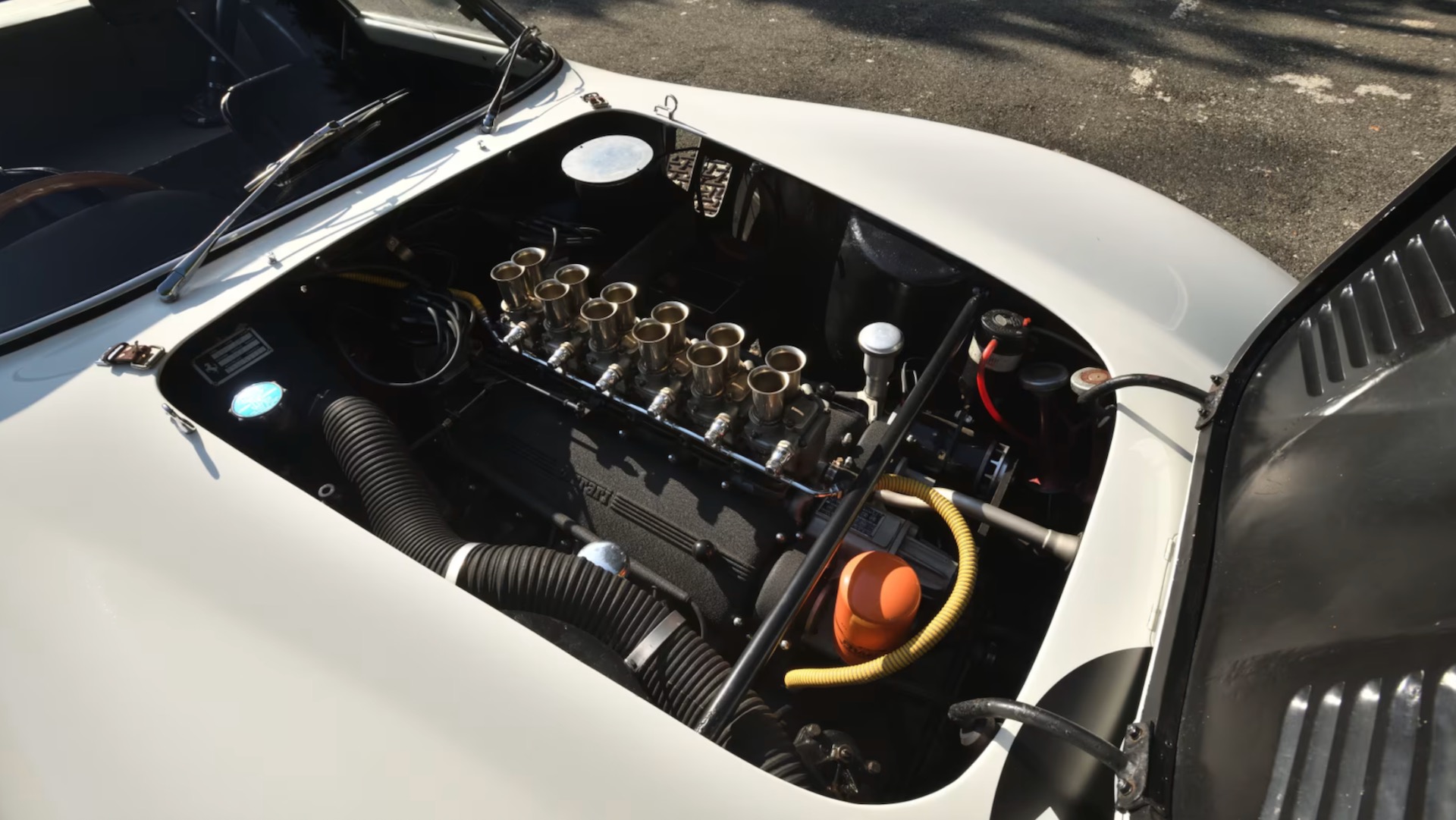Dubbed “Bianco Speciale” (“white special” in Italian), 3729 GT was ordered by British racing team boss John Coombs in 1962. Coombs was a Jaguar loyalist, and hoped the GTO would convince the management of that automaker to make its E-Type more competitive, according to Mecum. It’s unclear why he specified white paint, but the request likely caused some grumbling in Maranello—red being the mandatory color for competition cars at the time. Coombs’ status and the influence of Alfredo Reali, who shepherded special requests through the production process, ensured the car left the factory in its unique color.