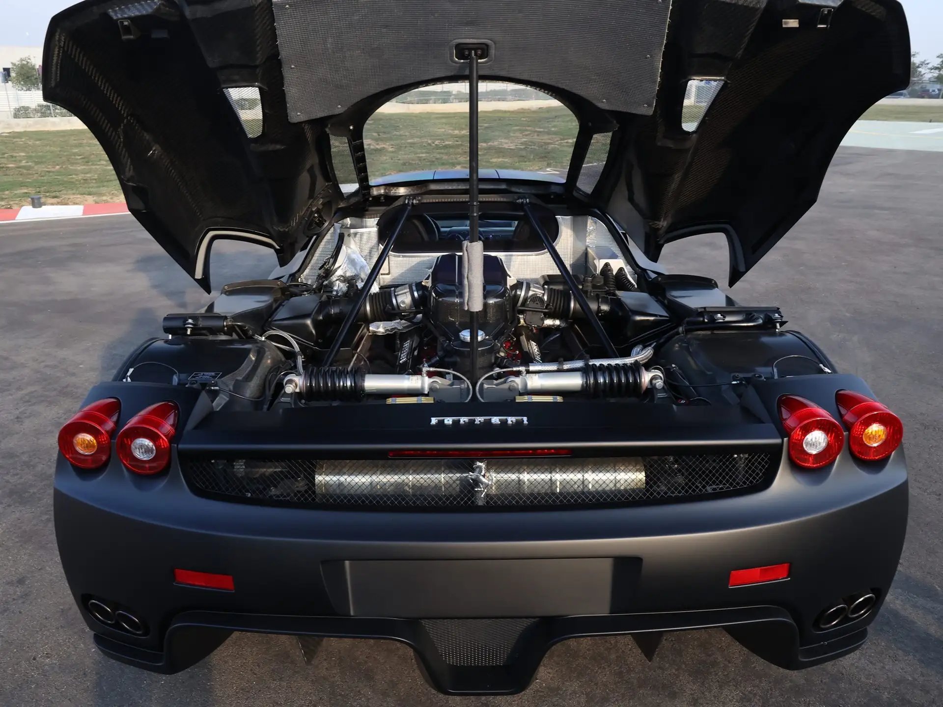 Per the auction listing, the vehicle belonged to a member of the Brunei royal family. That’s the kind of influence it takes to convince Ferrari to sell you its premier hypercar in a unique color from the factory. The Enzo left Maranello on October 15, 2004, finished in Nero Opaco—that’s Italian for Matte Black. The color has since become a popular choice for modern Ferraris, but this Enzo was the company’s first hypercar to wear the striking black finish.