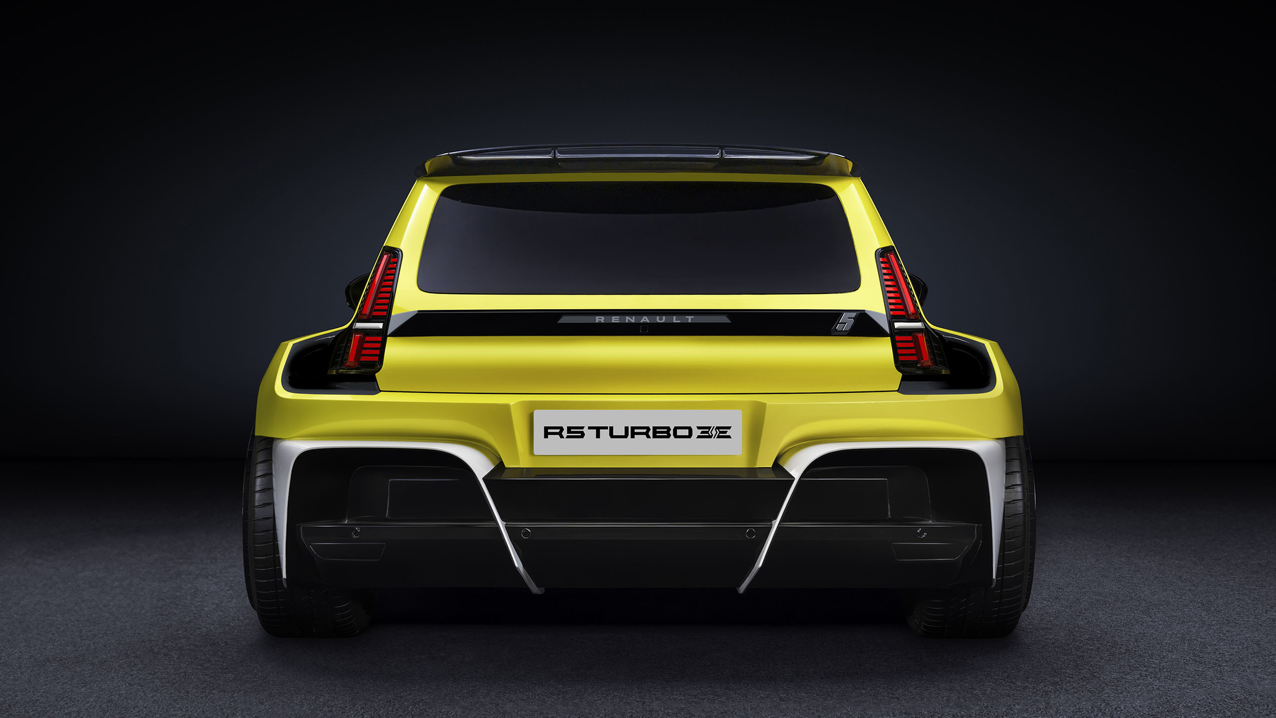 Given that we’re dealing with an EV, you’d be forgiven for assuming that the giant air intakes on the rear flanks are merely for show. One of them will house a charging port for the R5 Turbo 3E; of the other three, we expect one will simply be blocked off, while the other two will likely channel air to the rear brakes and through the massive rear under-body diffuser. Sticking that much body work into the wind for no gain would be a particularly foolish extravagance in a car where every hit to the aero profile means losing precious range.