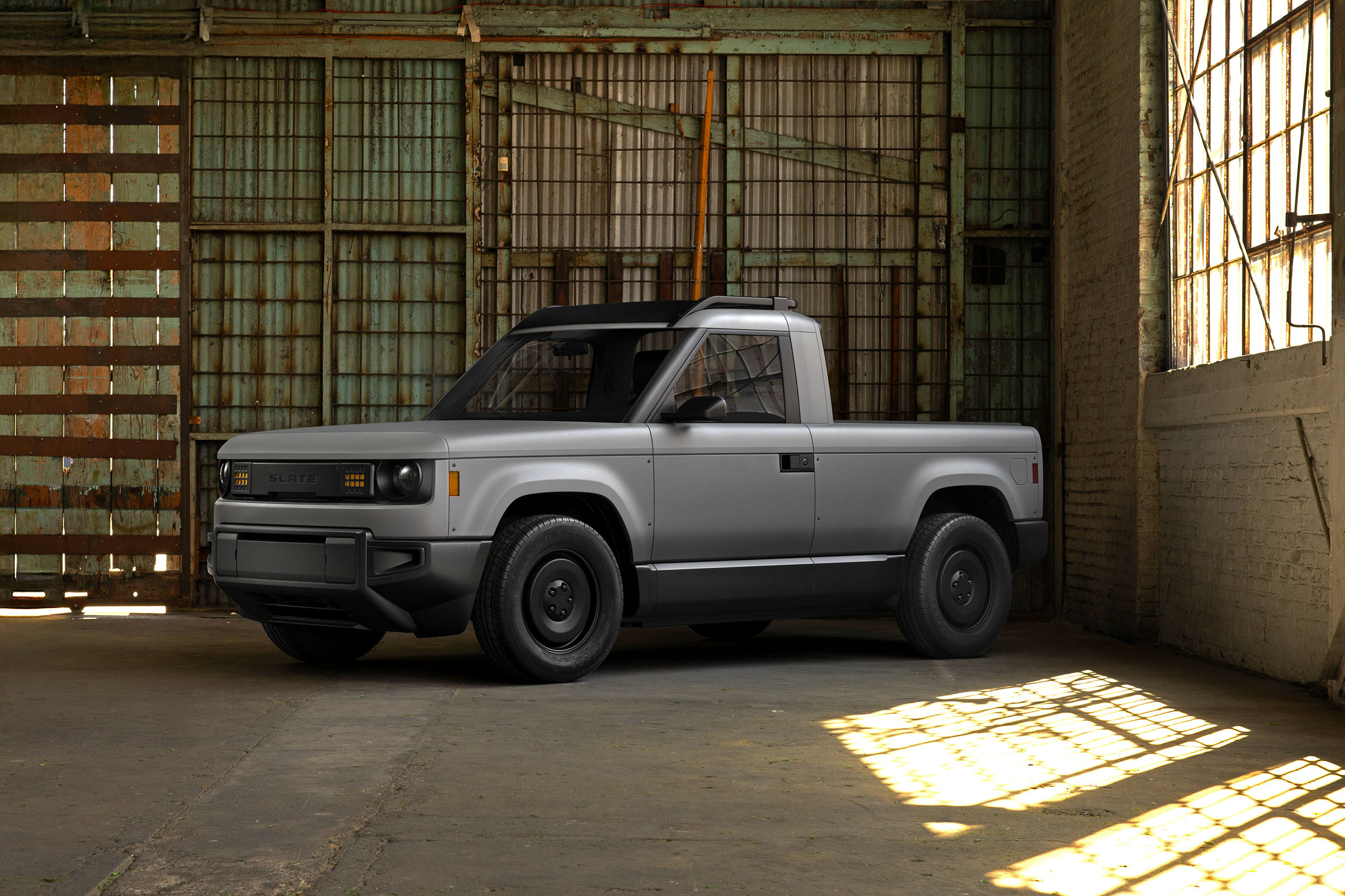 Slate, the new electric car firm rumored to be backed by Jeff Bezos, wants to revolutionize the pickup segment with an electric truck that costs less than $20,000 after federal incentives. That figure would make the model, which is simply called Truck, the most affordable new pickup on the American market. It will also be the smallest: At approximately 174 inches long, the first Slate model is more than 20 inches shorter than the already-compact Ford Maverick.