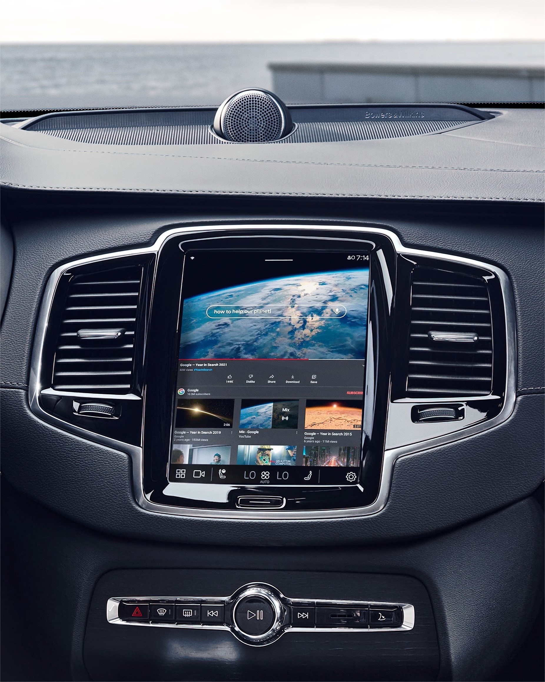 Contextual relevance is key to Volvo’s design. “The experience is about providing the right information at the right time in the right place,” Stovicek said. Upon entering the car, the welcome screen provides access to commonly used controls. This then gives way to a navigation-focused display when driving. Other features like media and phone controls are then presented by the screen when contextually relevant.