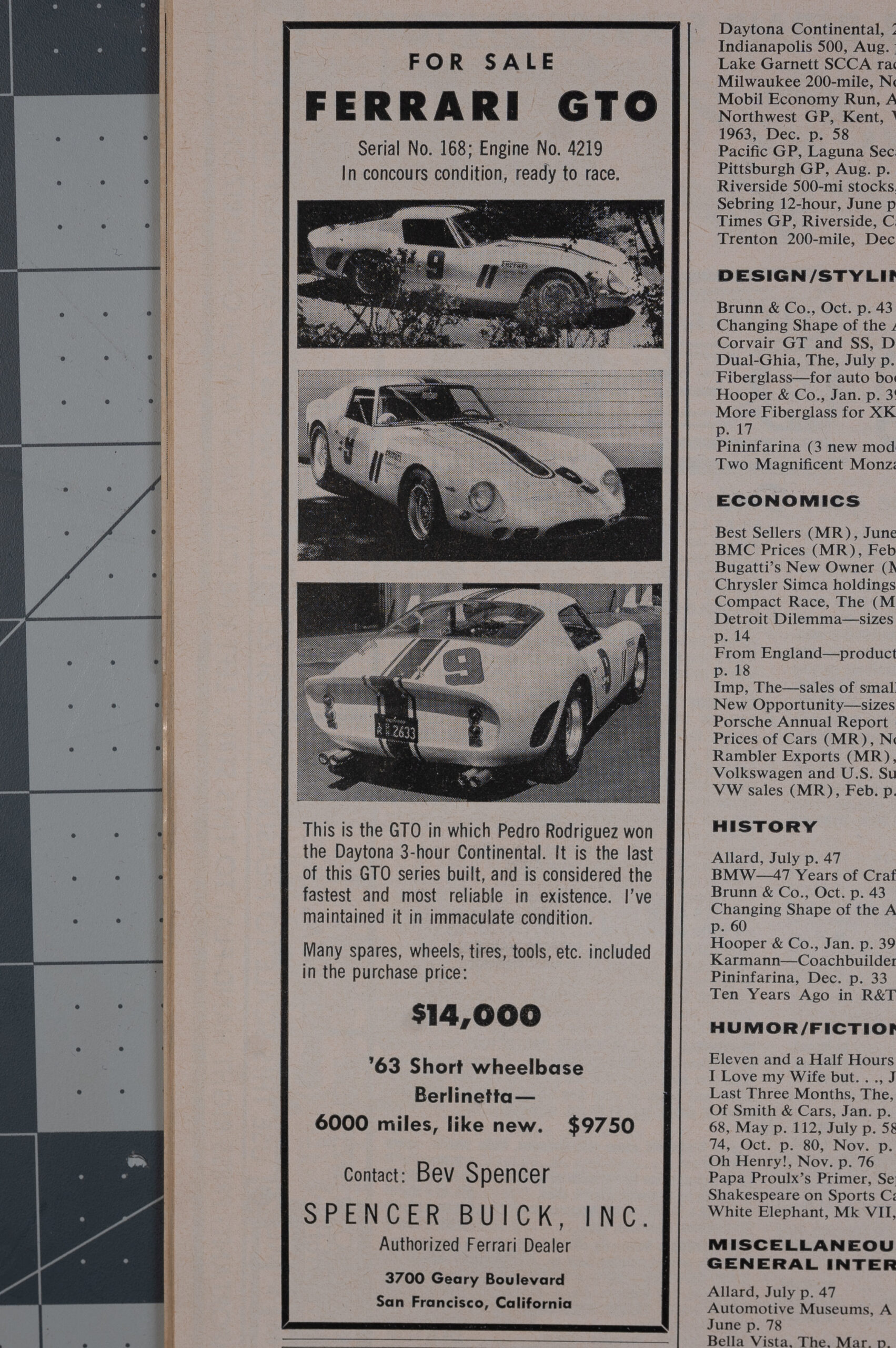 The Ferrari 250 GTO is one of the most valuable cars ever built, selling for well into the tens of millions of dollars today. Sixty years ago, though, they were worth a fraction of that, with one magazine ad promising a real 250 GTO for $14,000. Perhaps even more surprisingly, the car apparently sold for less—and still lived one hell of a life after that.