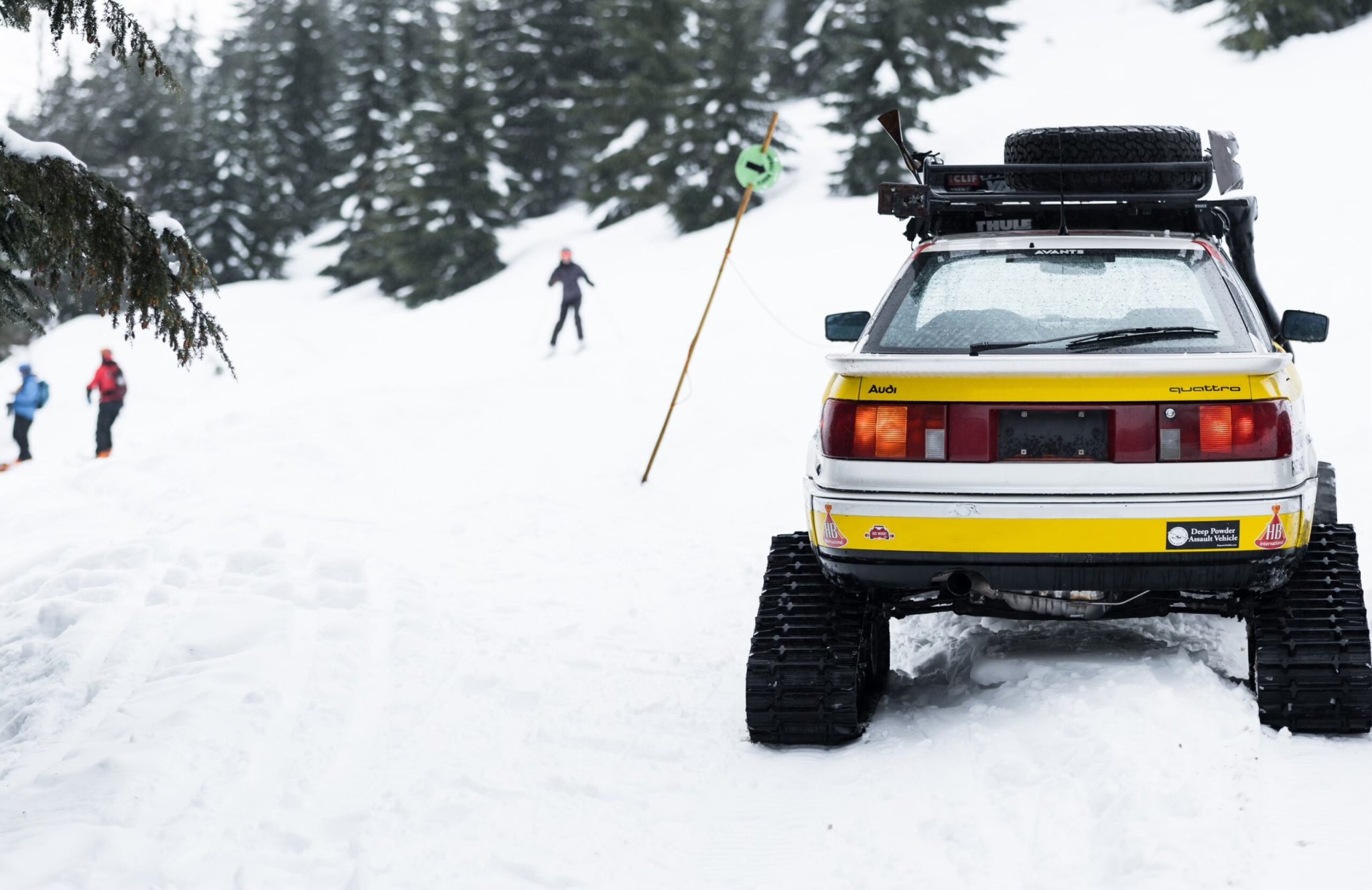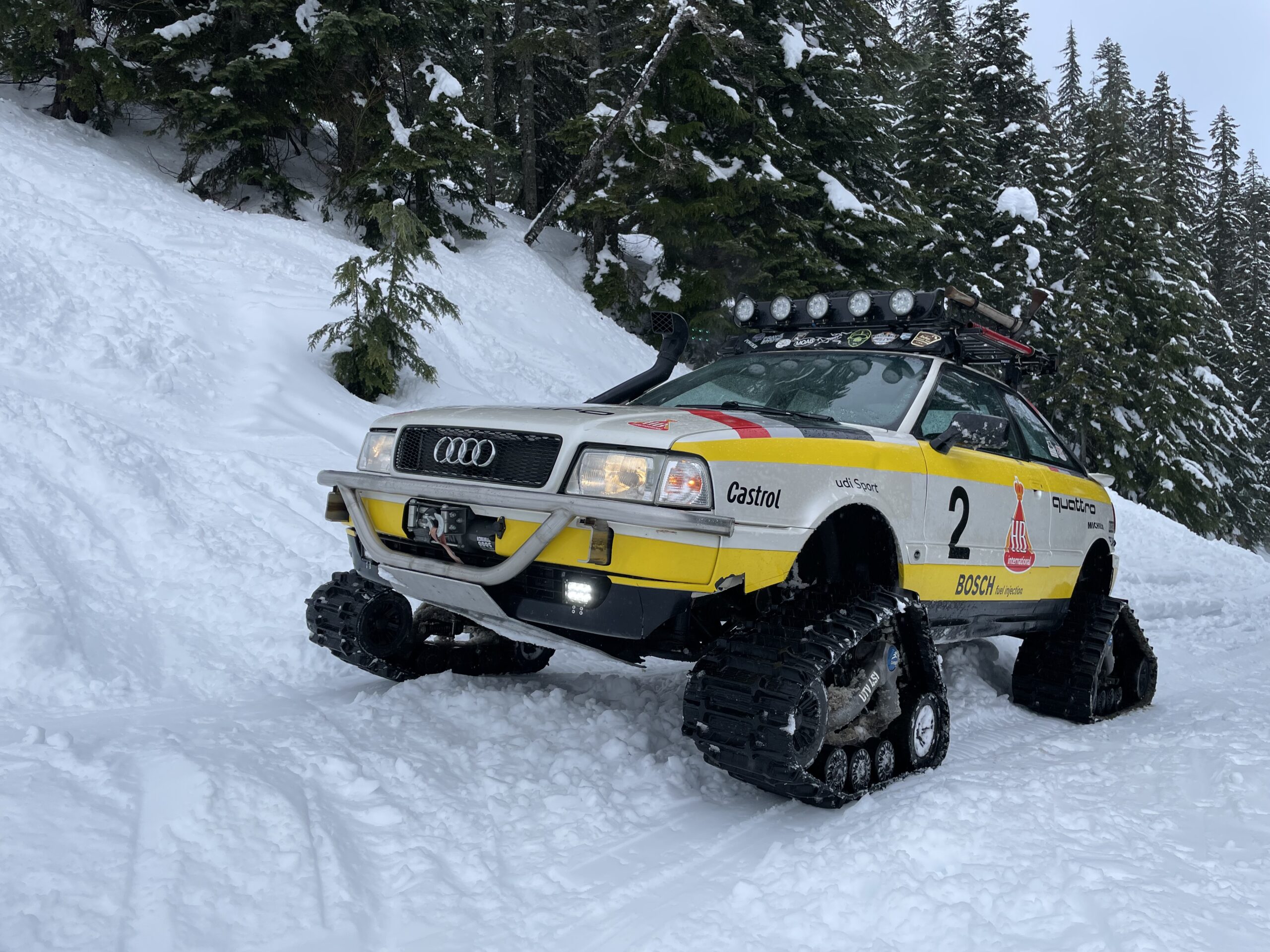 He wasn’t entirely sure where the trail turned into a cat track at Snoqualmie, but it definitely did. Somewhere back there, it most definitely did. Kirk from Seattle-based Quattromog was out driving his 1990 Audi Quattro he put on tracks for the first time when the off-road trail he was following turned into something entirely different.
