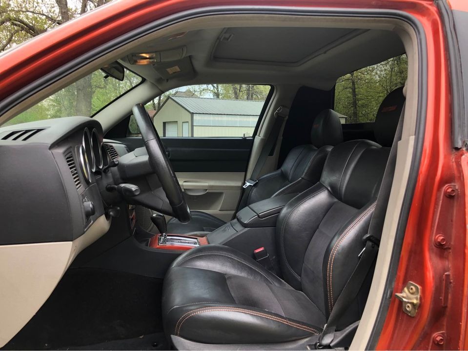 Those are Hellcat wheels shod in BF Goodrich G-Force Sport tires, and that’s a custom hood scoop with surprisingly tasteful graphics pulling the look together. I can’t help but think it’d look a lot less visually impressive if painted white, gray, or black, but that burnt orange suits it so well. Even the interior is clean—thank goodness, because those Mopar guys can get a little crazy.