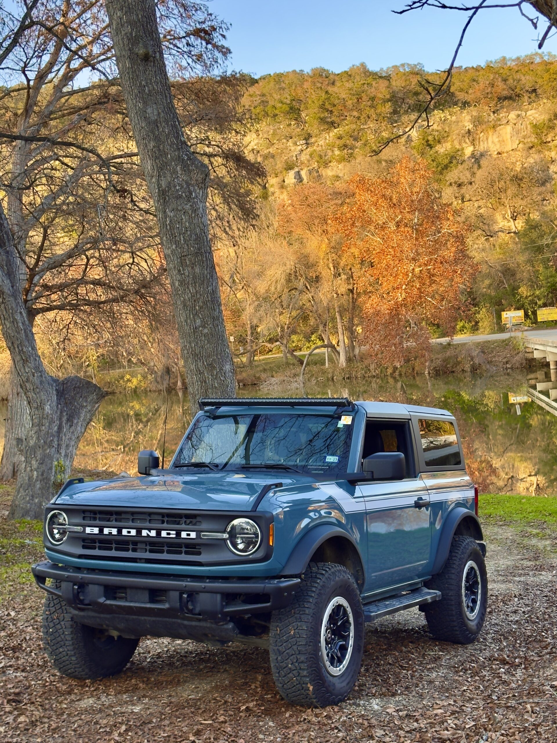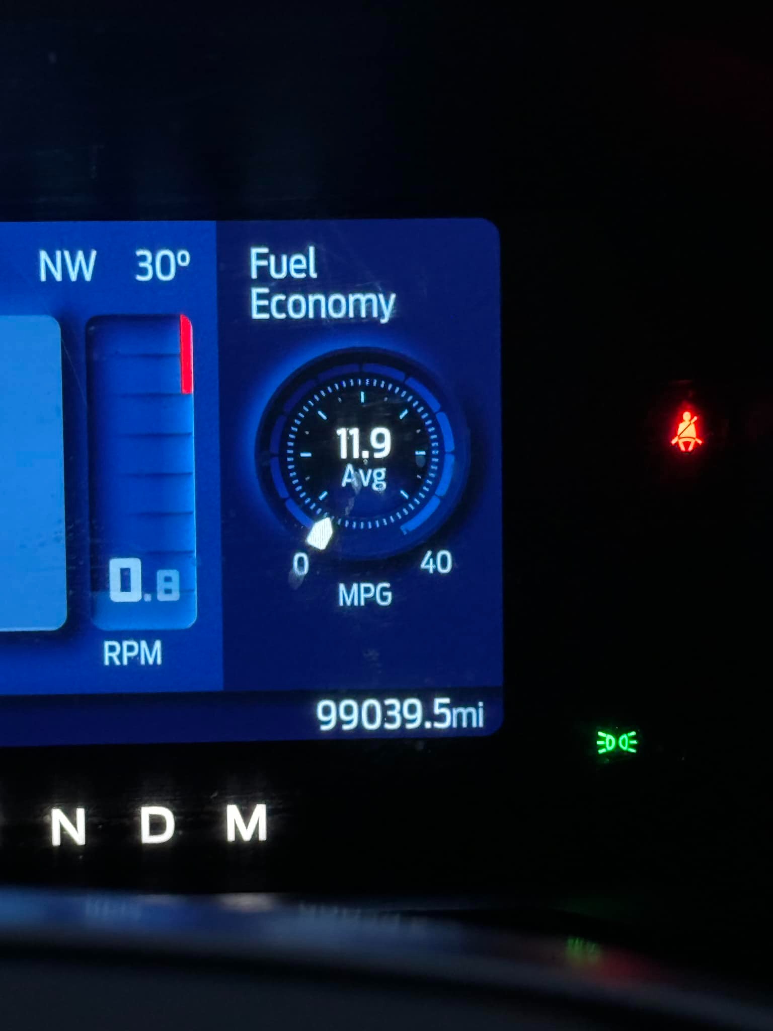 A photo of the Bronco’s digital gauge cluster verifies the 100,000-mile claim, but an earlier shot also tells us something else: It’s only getting 11.9 miles per gallon. The EPA rates two-door Bronco Sasquatch models with the automatic transmission and 2.3-liter EcoBoost at 18 mpg combined, so Bryant’s lead foot seems to be making a difference here. He tells me he drives it “like a lifted-up Mini Cooper” and it’s “surprisingly good for doing donuts,” so do with that information what you will.