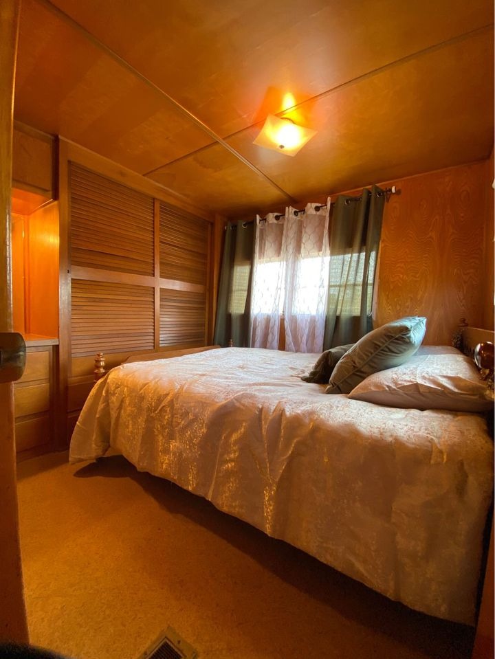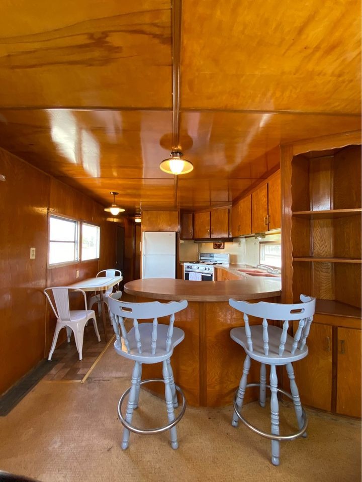 Anywho, the inside is furnished with barstools, a living room couch, and two beds. A lot of the work seems to have been performed pretty recently, as there are photos from a few weeks ago showing a bare interior and no blue stripe on the outside. It’s not totally original, but if that’s what you’re looking for in something like this, you’re better off buying an Airstream for way more money.