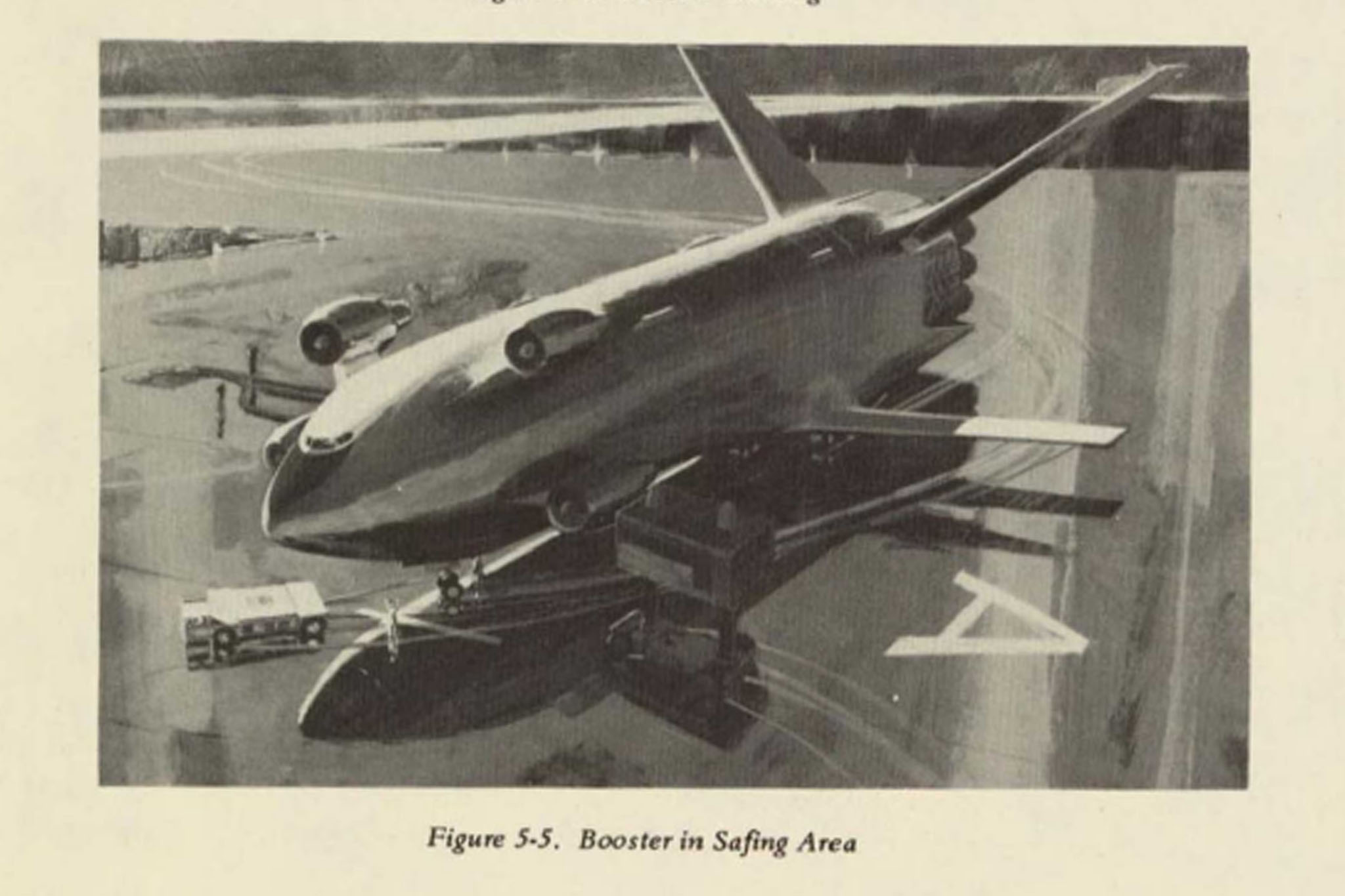 As Rockwell’s project boiled down a bit, the most realistic reason to have a giant piloted booster was so that the combined craft could ferry itself from one landing strip to another (as opposed to being carried on the back of a 747 like it eventually was) and because of the aforementioned cross-range flight distance, too.